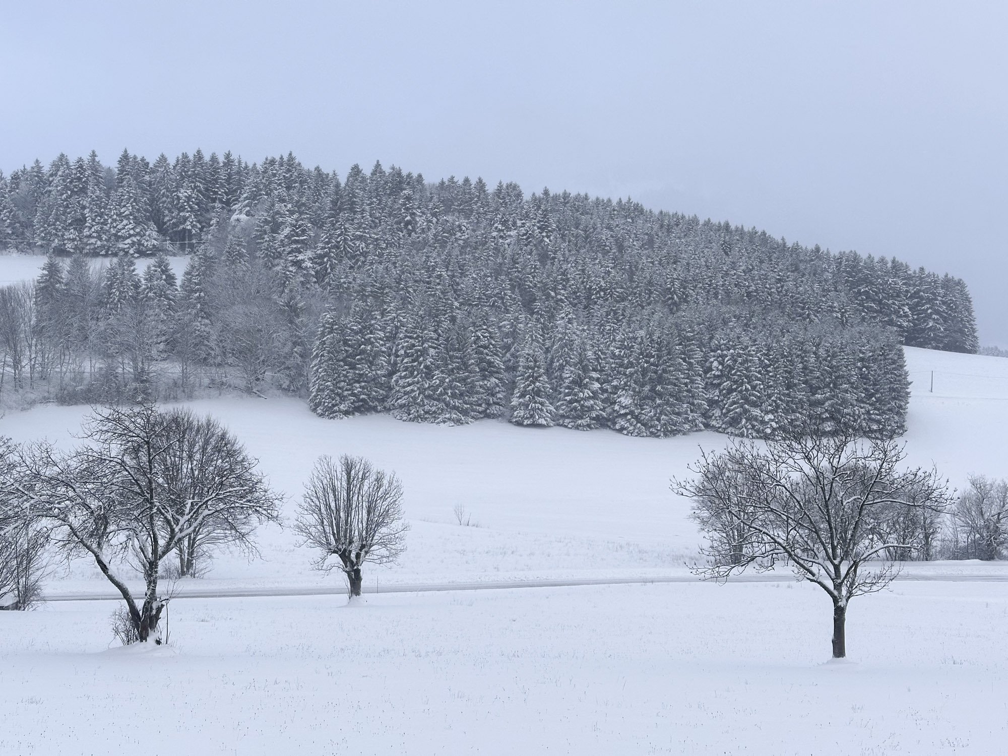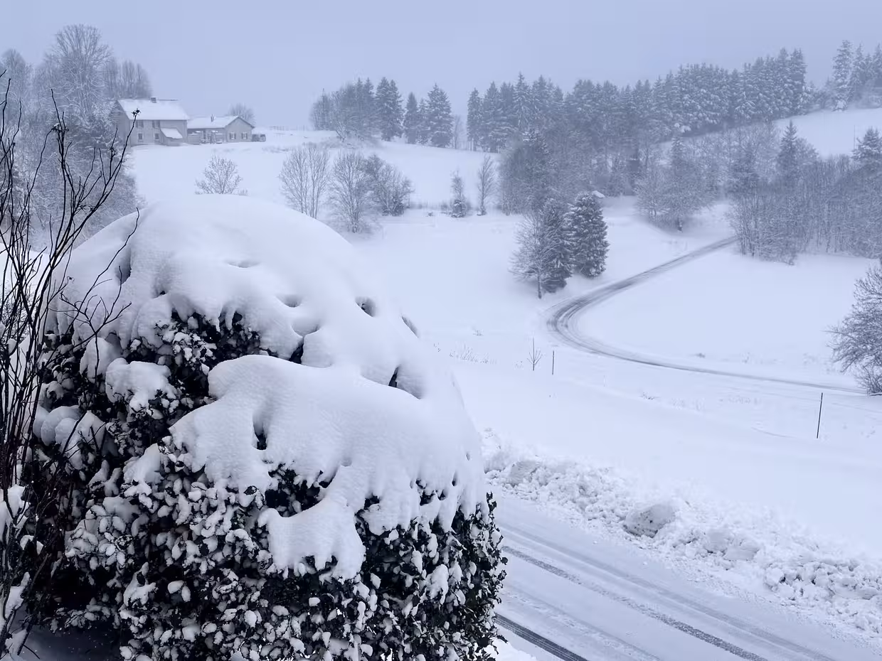 Mais la météo l'avait dit, la météo l'a fait : après une reprise de la neige dans la nuit de lundi à mardi, l'intensité a augmenté hier et cette nuit et au final c'est comme si toute cette pluie n'avait été qu'un mauvais rêve : on se retrouve à peu de choses près avec la même quantité qu'avant le déluge, soit une grosse trentaine de centimètres dans le jardin.