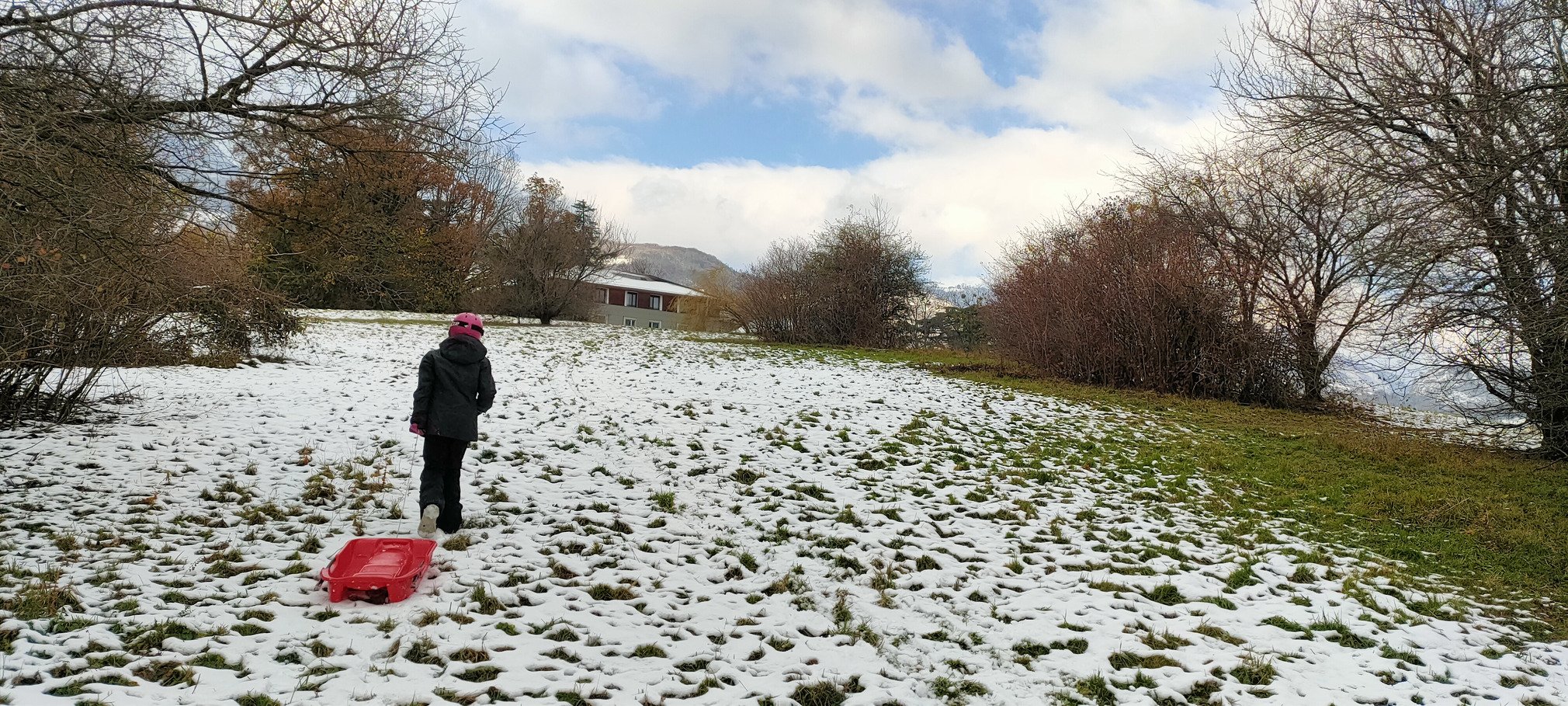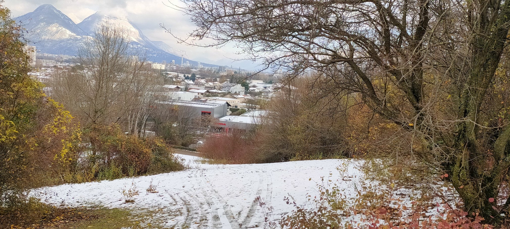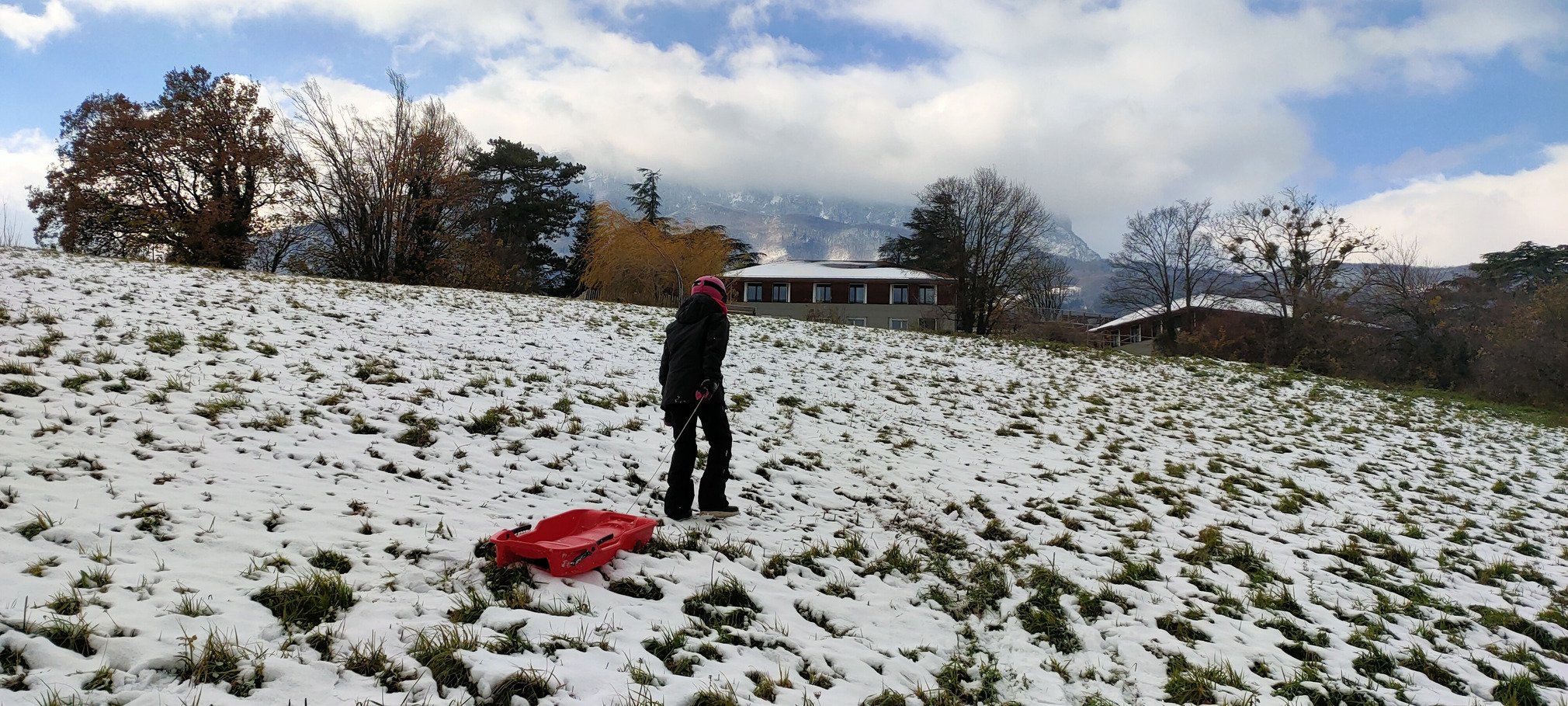 A défaut de pouvoir profiter du ski aujourd'hui, on se rabat sur la luge. Et pour une fois qu'il y a de la neige en plaine, il ne fallait pas louper le créneau. Direction... Seyssins et son parc François Mitterrand (celui de la mairie), à 230 m d'altitude. La neige est parfaite pour des bonshommes de neige (un peu humide et compacte) mais moins pour la luge avec cette faible pente.