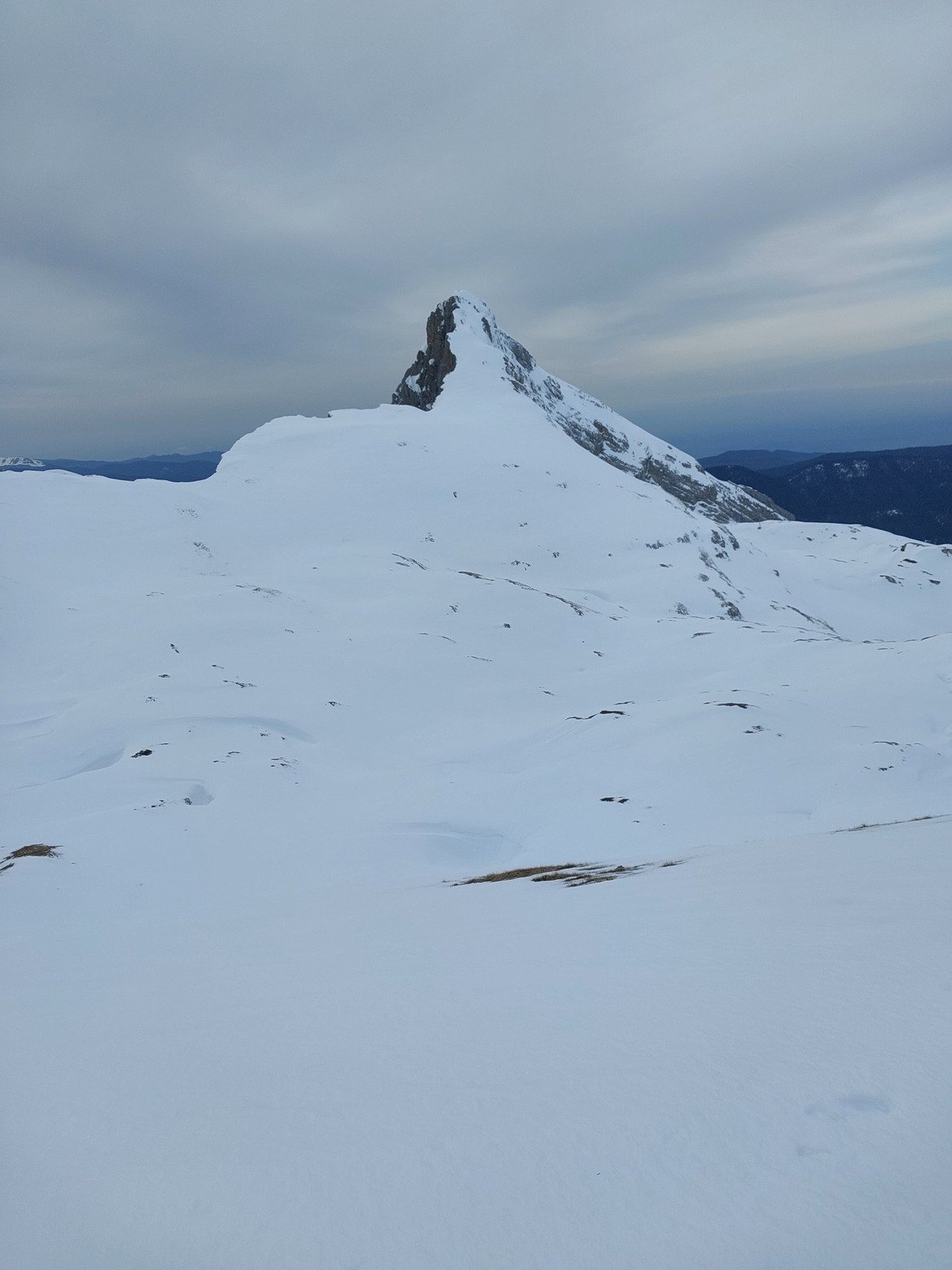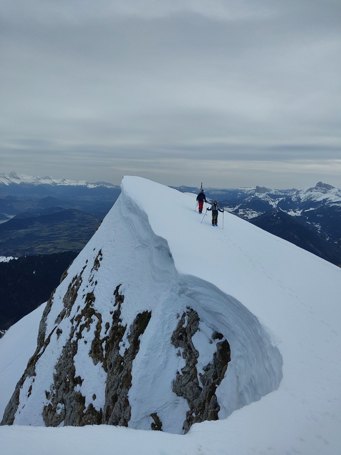 Une montee vers le col des 2 soeurs qui nous met dans le doute c est dur ,la luminosite diminue et on se retrouve en haut sur de la neige bien dure avec un jour blanc bien blanc ,on pourra dire qu on s est promene c est deja ca