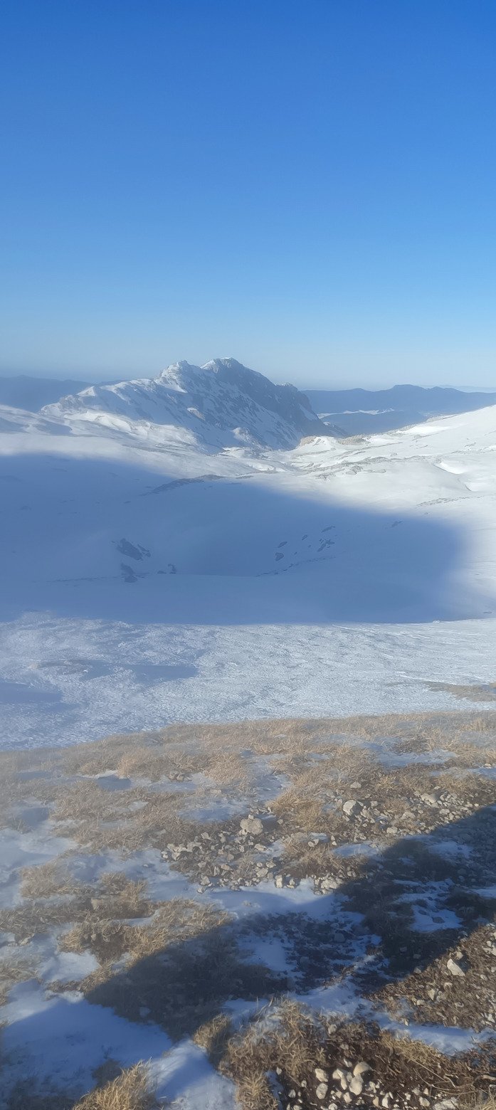 mais il fait tellement beau que ce serait dommage de rester a la maison, ce n'est pas le malheureux centimètre tombe la nuit du réveillon qui a du améliorer les affaires! Et effectivement les pistes sont plutôt dures voire très dures et cerise sur le gâteau les vacanciers raclent consciencieusement le peu de neige sur la glace bien présente elle …cependant en vieux briscards on n'a pas l'intention de rester sur les pistes, vivent les peaux on file voir sœur Sophie départ depuis le lac de la moucherolle ,avec l'aide des remontées la rando est beaucoup moins fatigante ( on a du gagner plus d'une heure par rapport a la dernière fois)