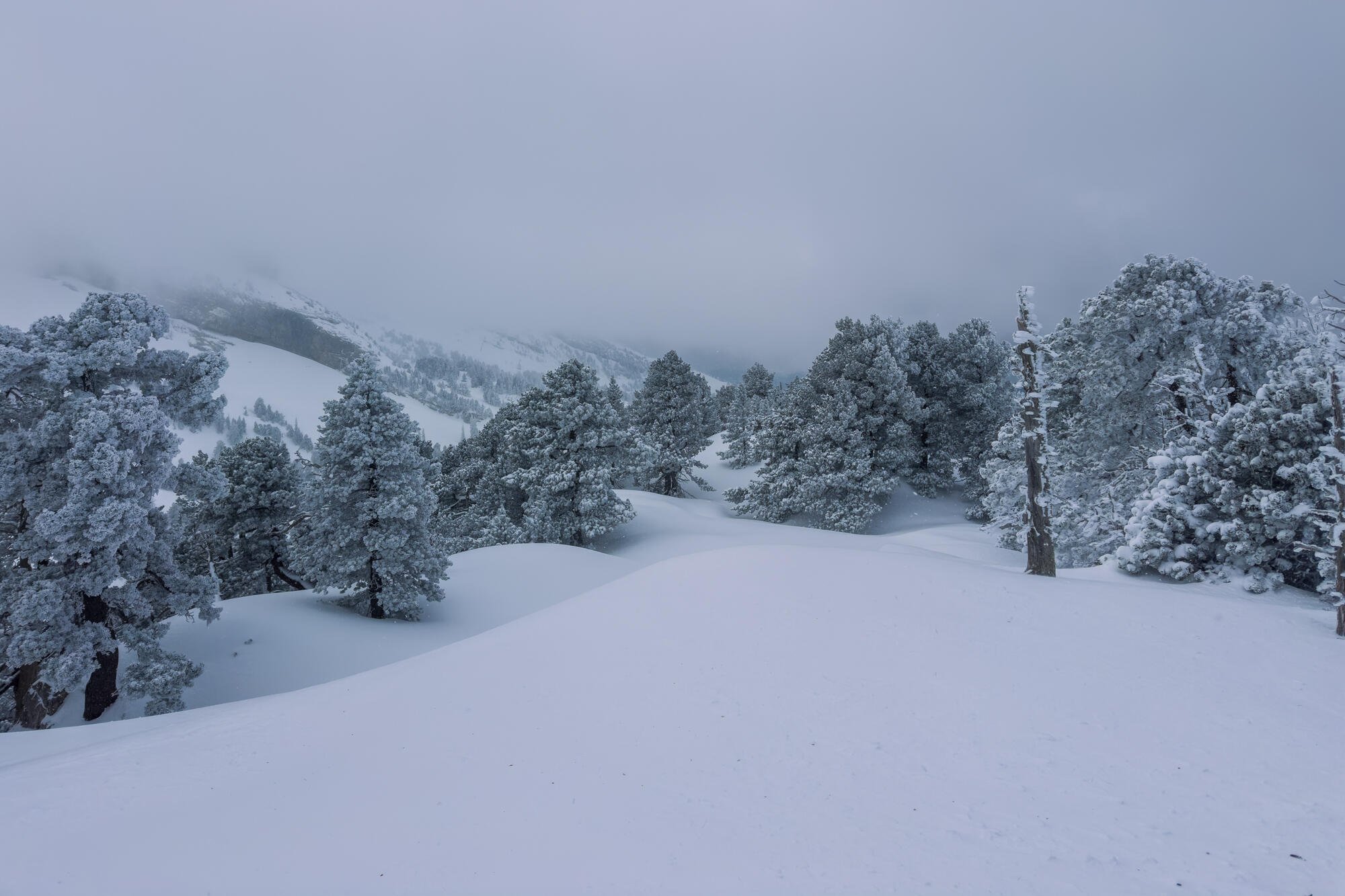Il fallait jouer à cache cache avec le brouillard aujourd'hui et savoir où pointer sa spatule pour trouver les coins à poudre après la tempête de ces derniers jours.