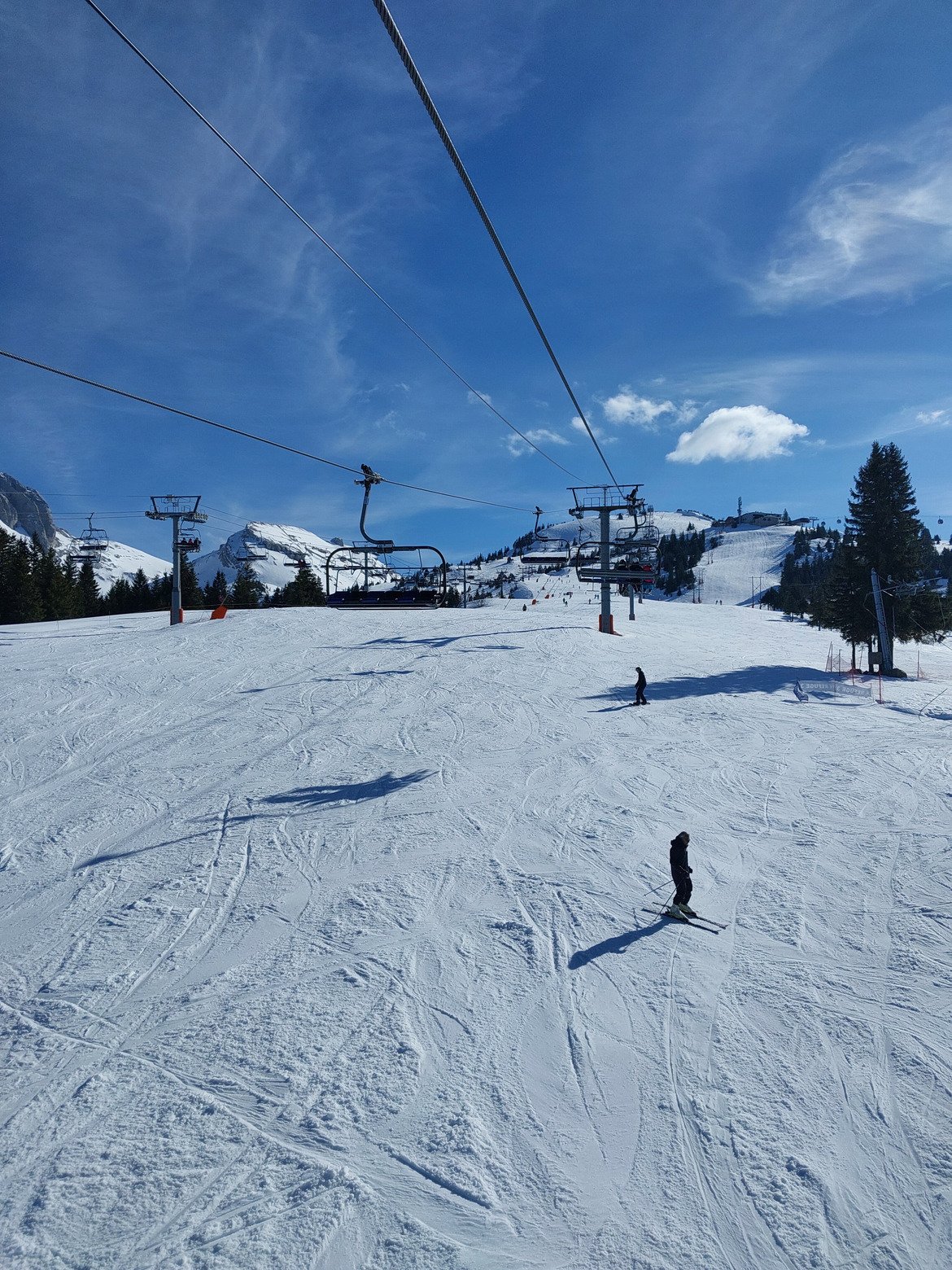 Pas grand monde malgre un beau soleil de la neige en quantité