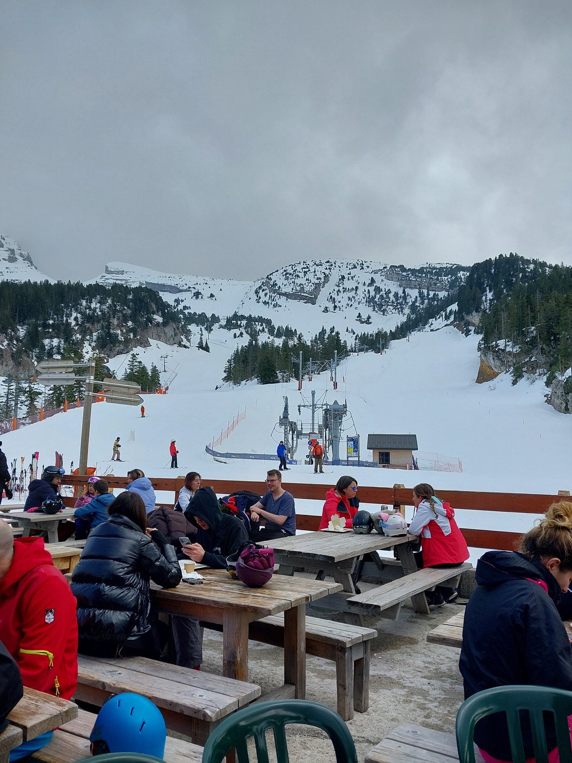 Après ca nous derange pas tellement,les petits hors pistes sont pas degueu neige molle un poil lourde sous 1500 mais ca va ,une combe de fer parfaite mais a 14h30 on bloque pour se faire une frite coca .et oui c est notrr sortie on profite d un moment ensemble