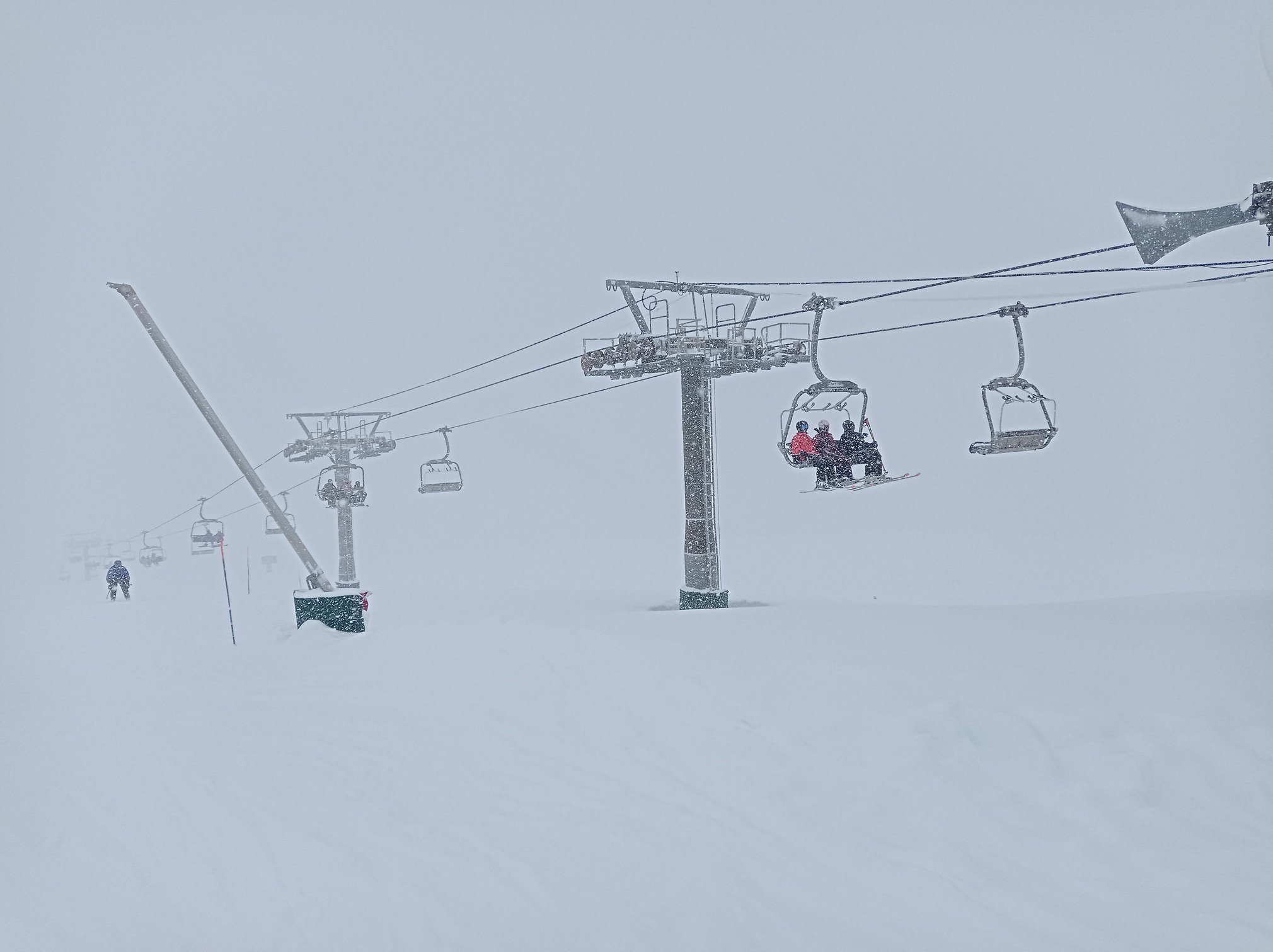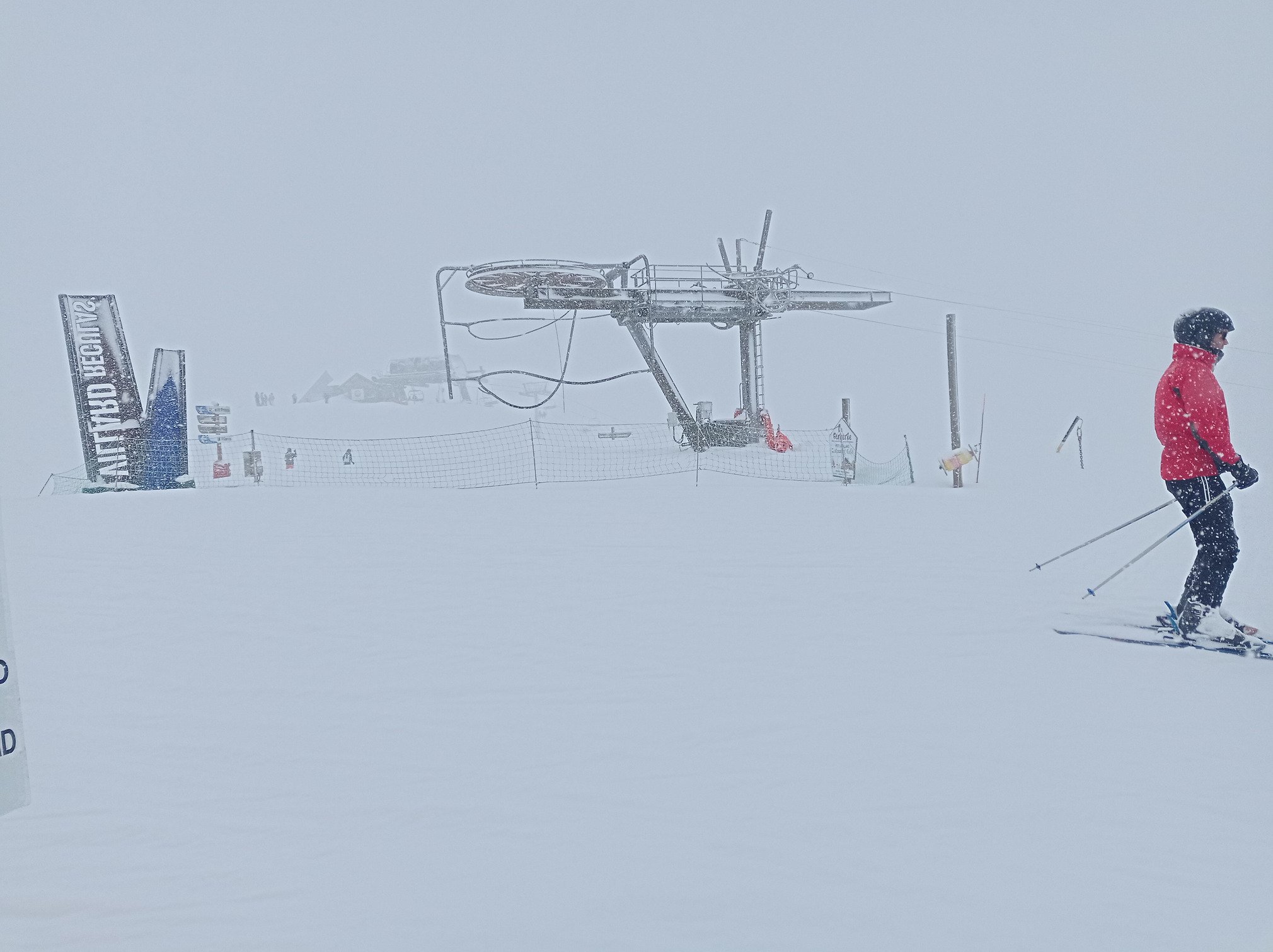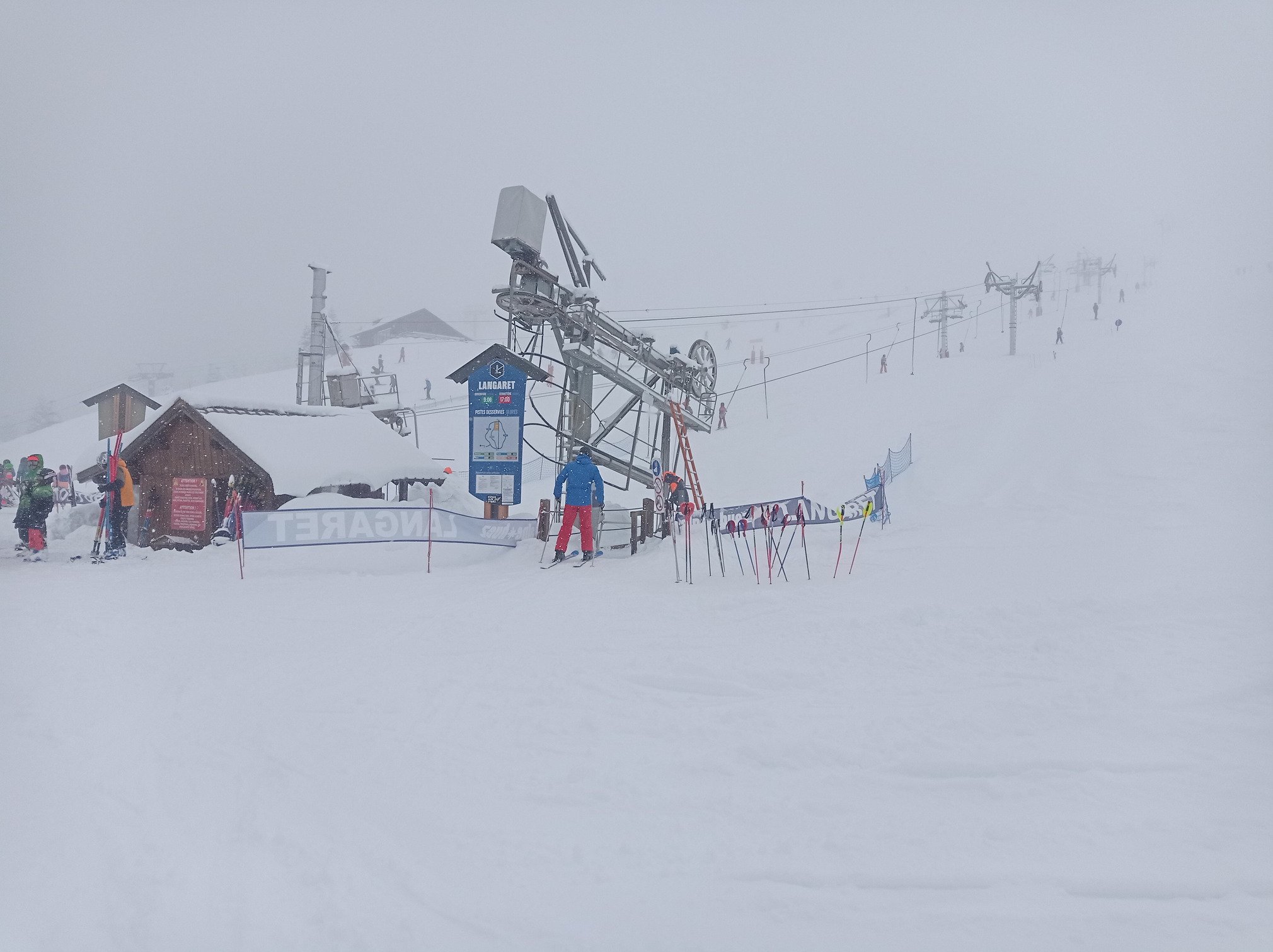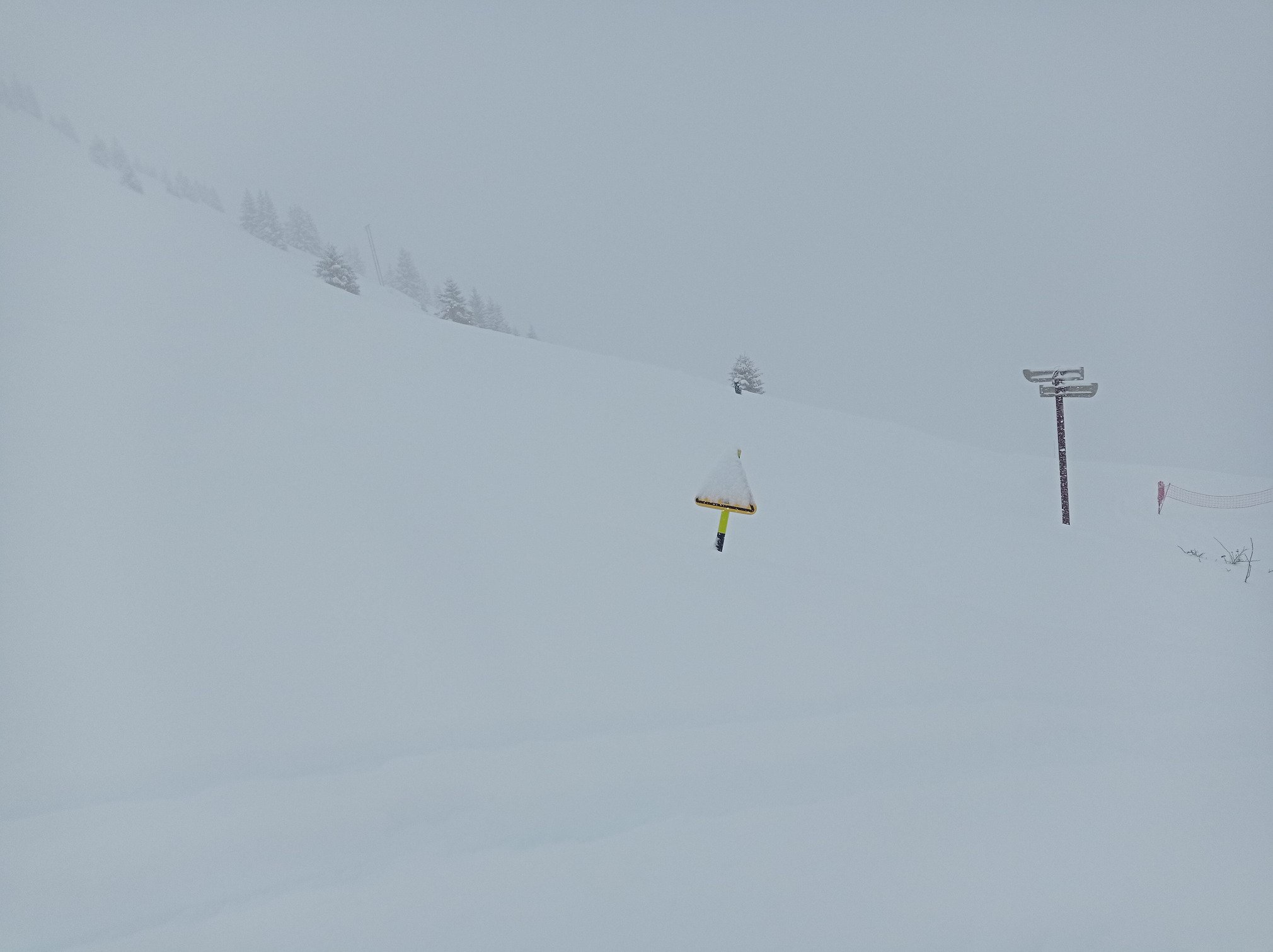 Côté pistes, ben on y voit rien ou pas grand chose sur le haut des pistes. Plus bas c'est un poil mieux... L'affluence est plutôt raisonnable sur le Villarais. Même en restant sur les pistes, c'est poudreuse de partout. Vivement demain quand même qu'on y voit plus clair !
