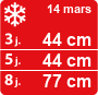 Ce samedi 14 mars à Roubion Les Buisses, la journée se déroule sous un ciel bien chargé avec des chutes de neige régulières sur le haut du domaine. Le matin, les flocons descendent vers 1200 m et accrochent déjà les pistes d’altitude. L’après-midi, la limite pluie-neige remonte autour de 1500 m tandis que les précipitations restent actives. En soirée, elle redescend vers 1300 m et la neige gagne jusqu’au front de neige. On peut attendre autour de 30 cm sur les hauteurs et près de 20 cm vers les départs, selon la tenue en cours de journée.