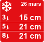 Ce jeudi 26 mars à Chamrousse, le ciel reste couvert et la neige tombe du matin au soir sur l’ensemble du domaine. Les précipitations se montrent soutenues en matinée, puis elles faiblissent l’après-midi avant de persister encore en soirée. La limite pluie-neige se place très bas, nettement sous le bas des pistes, ce qui garantit des flocons partout. On peut viser autour de 30 cm de neige fraîche d’ici ce soir, de quoi bien recharger les pentes.