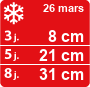 Il pourrait neiger jusqu'à 31 cm en haut du domaine de Château d'Oex dans les prochains jours. Consultez la météo neige pour Château d'Oex en utilisant la carte interactive, ou consultez le bulletin météo des 8 prochains jours.
