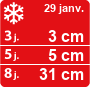 Ce jeudi 29 janvier à Sainte-Foy-Tarentaise, la journée se déroule sous un ciel souvent très nuageux. De faibles chutes de neige passent par moments du matin à l’après-midi, sans intensité marquée. La limite pluie-neige reste sous le bas du domaine, remonte un peu vers la mi-journée autour de 1000 à 1200 m, puis redescend franchement en soirée. Au final, on pose une fine couche sur l’ensemble des pistes, de l’ordre de quelques centimètres.