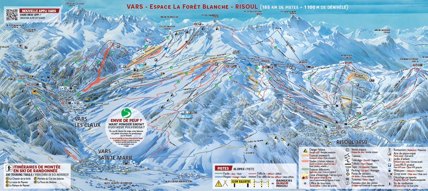 Préparez votre séjour à Vars avec notre plan détaillé des pistes de ski à Vars. Découvrez les 100 km de pistes variées, les 111 pistes de tous niveaux, ainsi que les 72 remontées mécaniques qui desservent le domaine skiable. Que vous soyez débutant ou skieur expérimenté, le plan des pistes de Vars est indispensable pour naviguer sur le domaine skiable et profiter pleinement de votre journée sur les pistes de Vars.