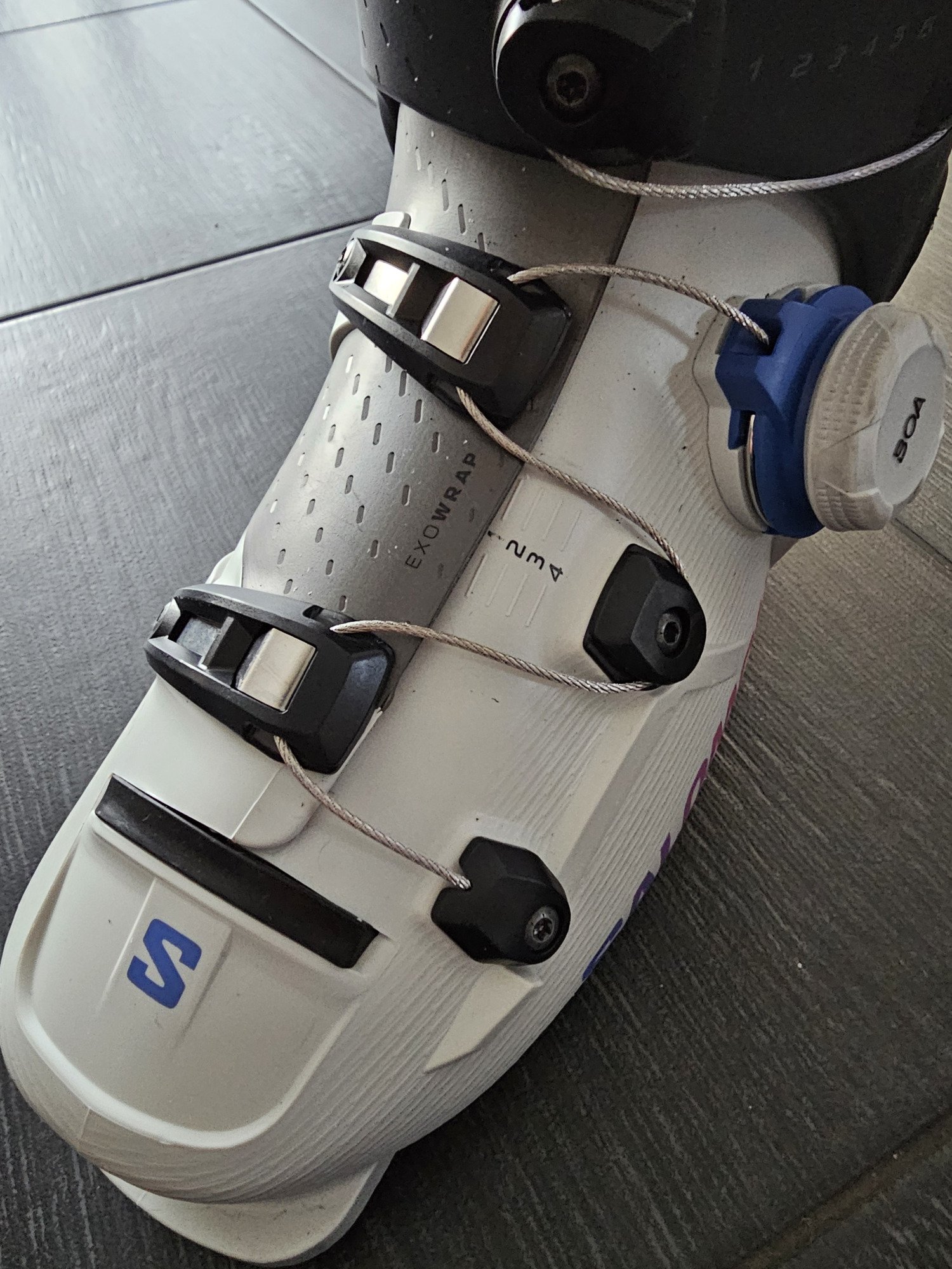 A l’utilisation le double système BOA est bien pensé mais lors du chaussage/déchaussage il faut composer avec l’ensemble des câbles et notamment le système d’attache du collier qui une fois libérée fait un peu salade de câbles avec celui du bas et peut gêner l'écartement de la coque.