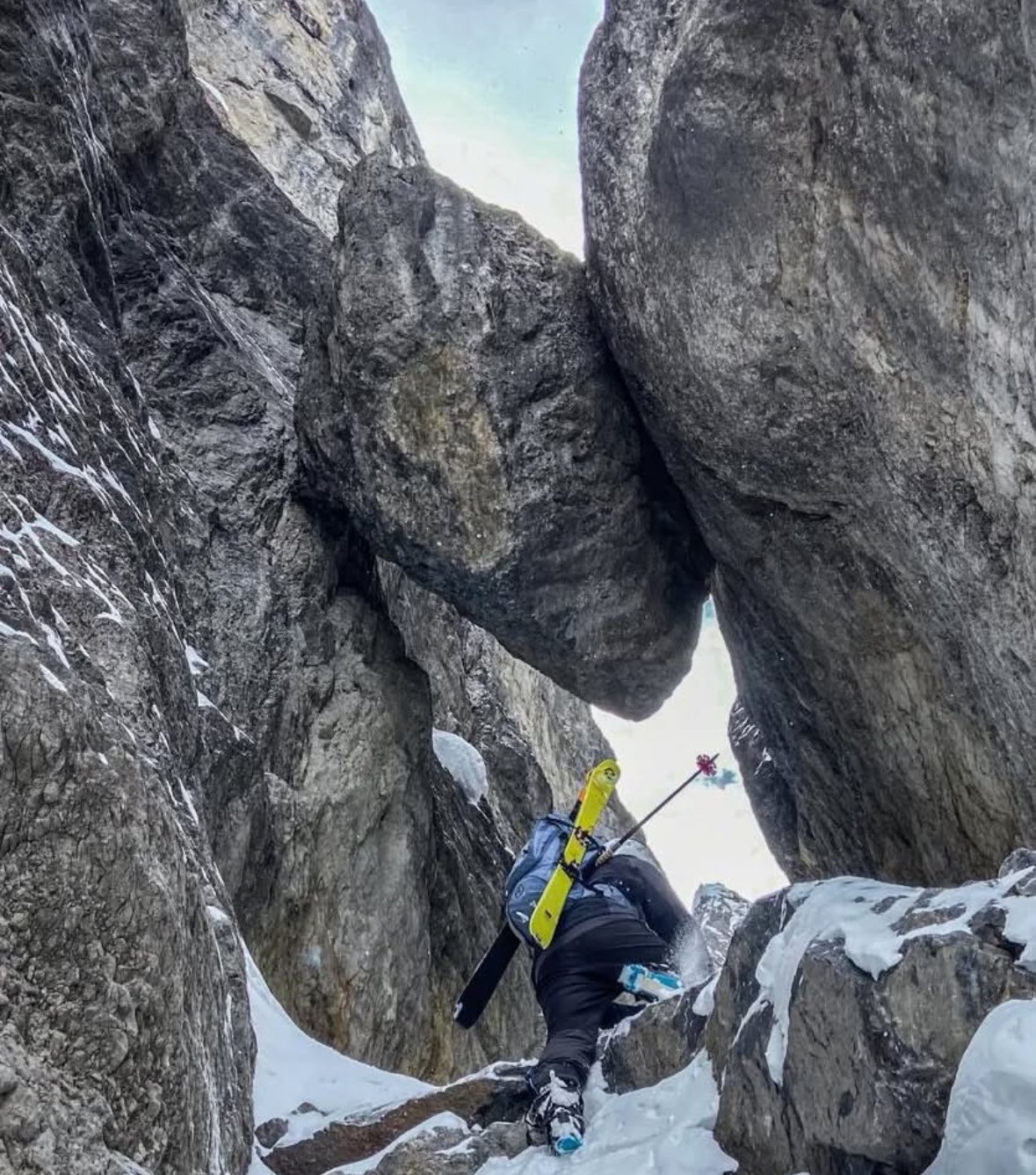 Je suis plus à l’aise sur les skis qu’à pieds. Mon niveau d’alpinisme n’est pas terrible et je le pratique uniquement dans le but d’aller chercher des lignes en ski.