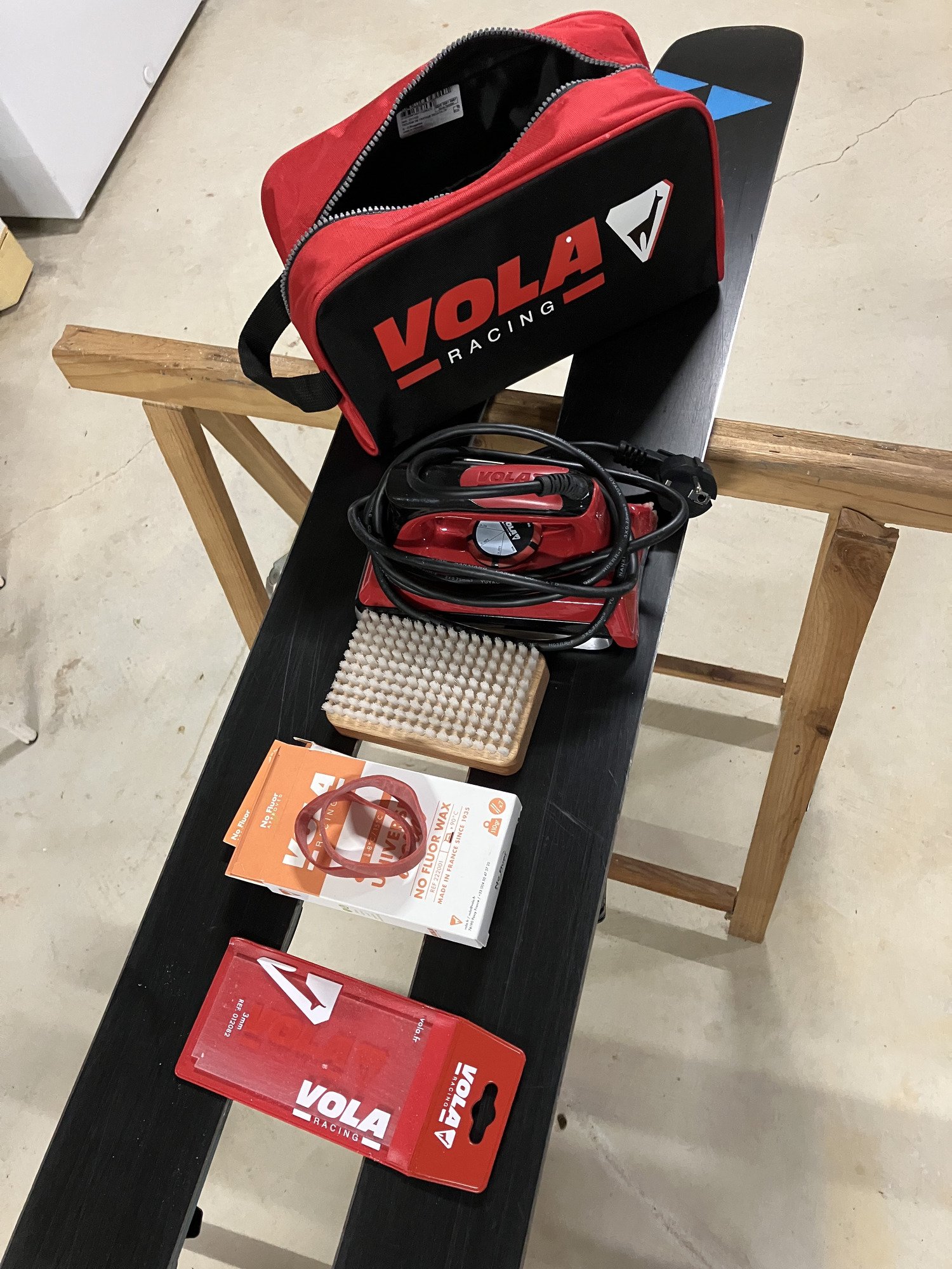 Pour cette première expérience, j’ai installé mes skis sur deux bons vieux tréteaux, bien à plat. Avec l’aide de quelques tutoriels disponibles sur Skipass, je me suis lancé dans le fartage. Le fer VOLA est simple à utiliser, chauffe rapidement et permet une application fluide du fart.