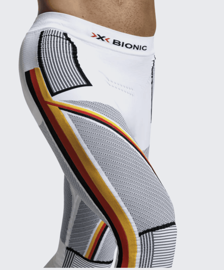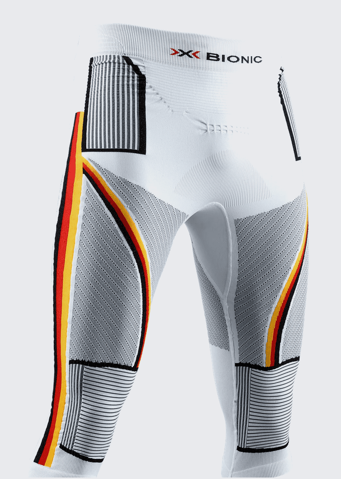 Suite à une rupture des ligaments du genou, on m’avait conseillé de trouver un sous vêtement compressif pour que les muscles puissent correctement maintenir les genoux. Le X-Bionic accumulator 4.0 patriot 3/4, ici en version trois quart, s’adresse aux skieurs recherchant un sous-vêtement technique compressif, capable d’accompagner des journées complètes sur les pistes comme en ski plus engagé.