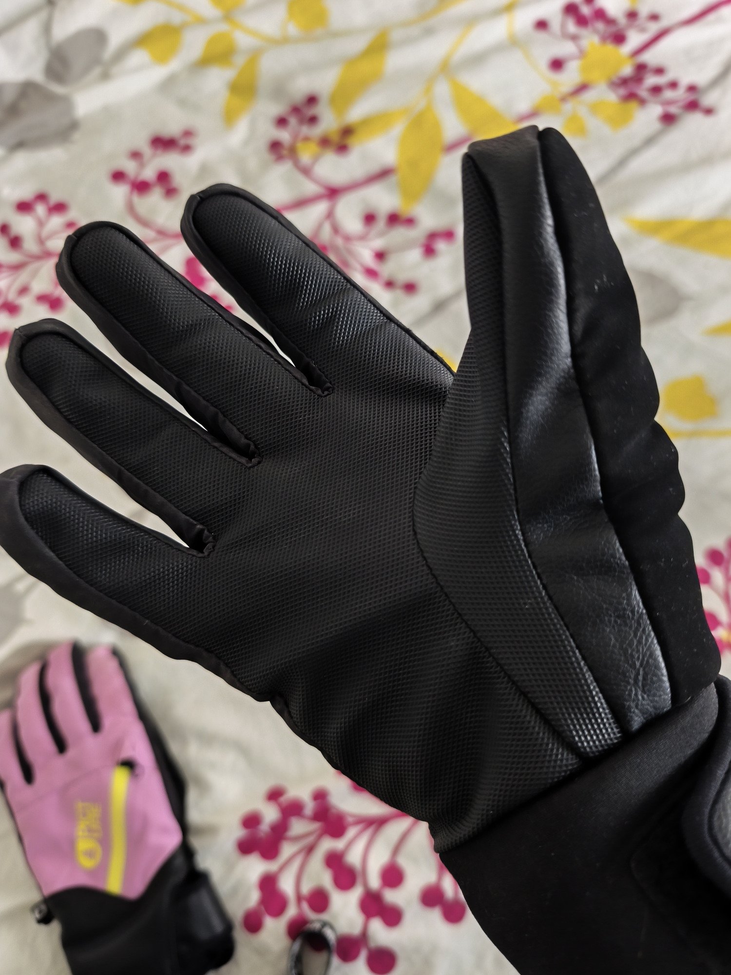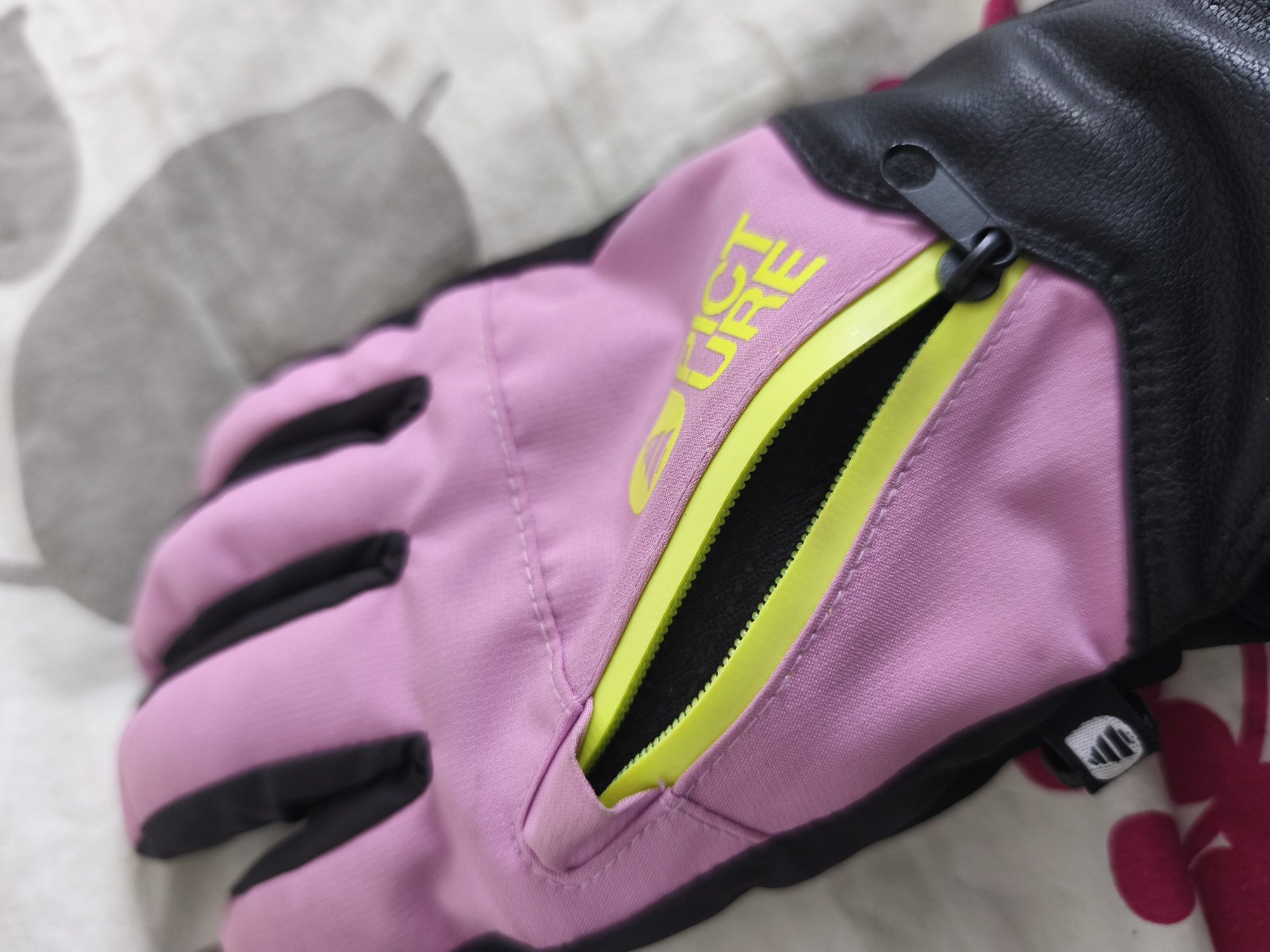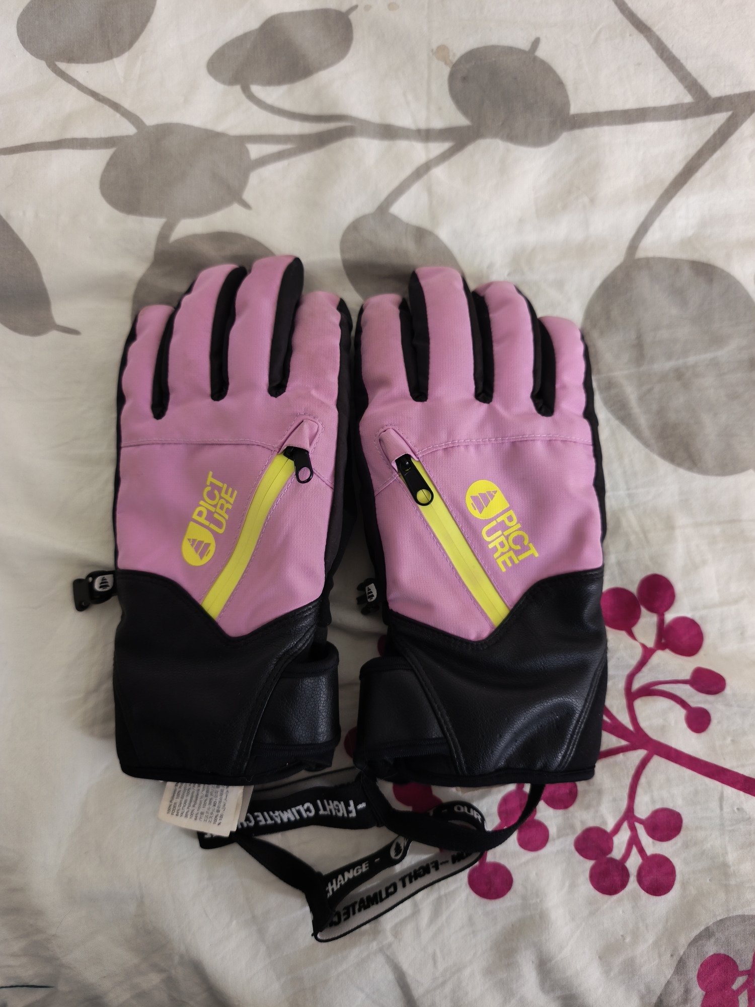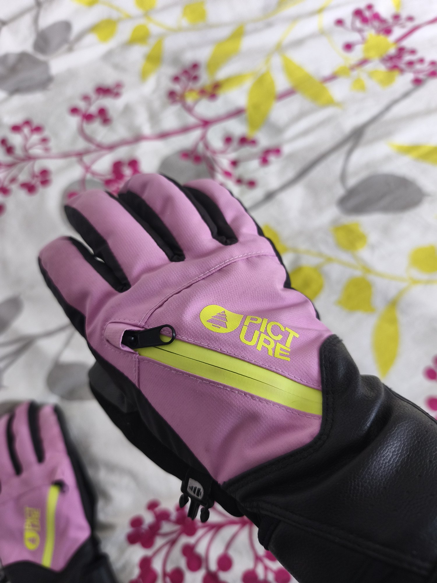 Ce que je recherchais en achetant ces gants : une couleur fun (reconnaissable quand les gants sont avec d'autres gants), une bonne préhension au niveau des mains, un élastique permettant de les enlever sans les perdre, une aisance dans le gant pour pouvoir mettre des sous gants en dessous.