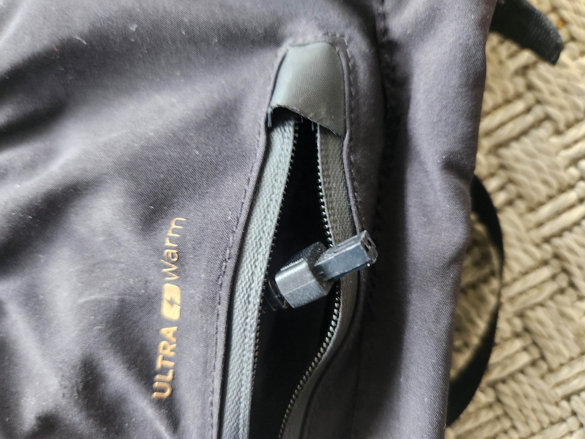 A la prise en main, le produit respire la qualité. Les matériaux utilisés sont sérieux et les finitions soignées. Après avoir découvert le bouton On/Off placé sur le dessus de la main, on observe la poche à zip étanche contenant les 2 batteries et les connections pour le branchement. On sent bien sûr le poids supplémentaire par rapport à un gant classique, je l’ai évalué à environ 75 g par gant. Une fois le câble USB branché, la première charge est très longue, le voyant reste au rouge pendant plus d’une douzaine d’heures.