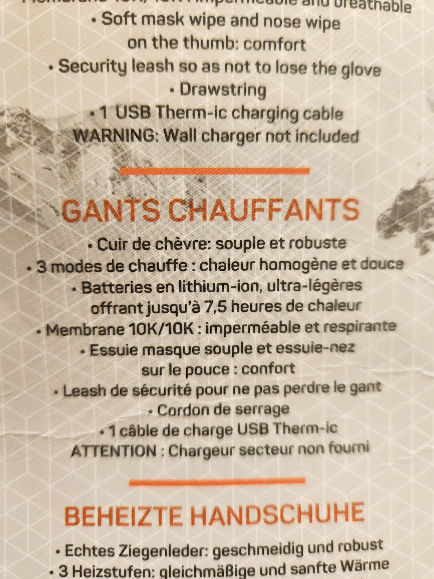 Vu la situation du bouton de commande, on a vite fait d’appuyer dessus sans le vouloir et d’augmenter la puissance de chauffe ou bien d’éteindre le gant si la pression est prolongée sur le bouton. L’emplacement de ce dernier pourrait être différent ou bien trouver une autre astuce pour éviter ces petits désagréments. En ayant les gants, le démarrage n’est pas non plus facile, il faut vraiment appuyer fort et longtemps sur le bouton (un bon 3 secondes).