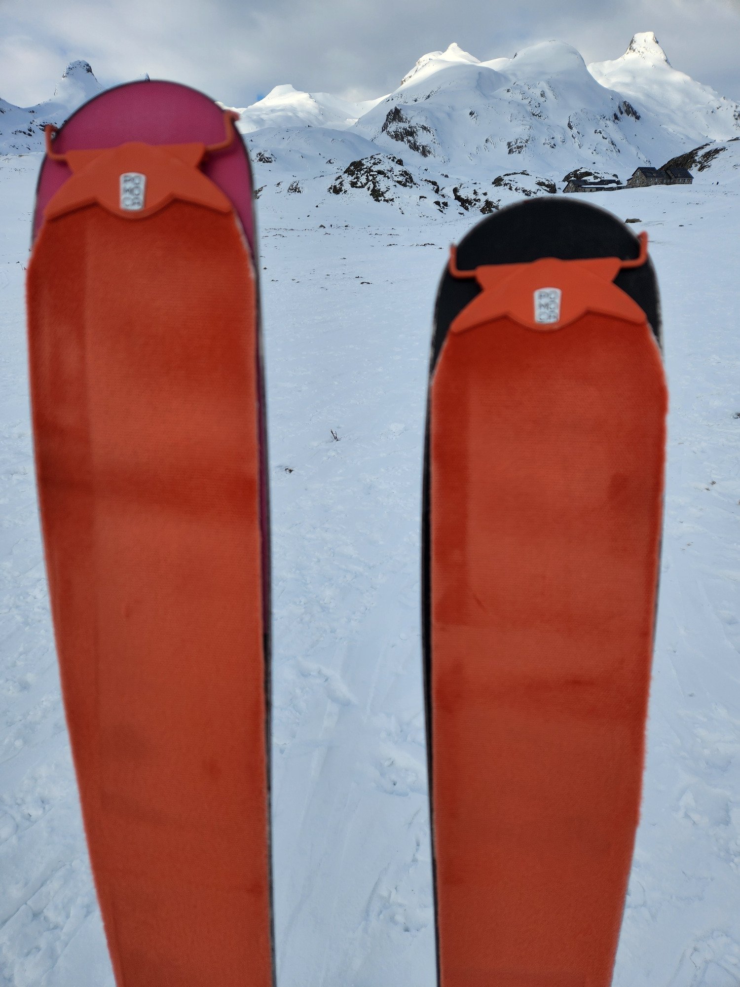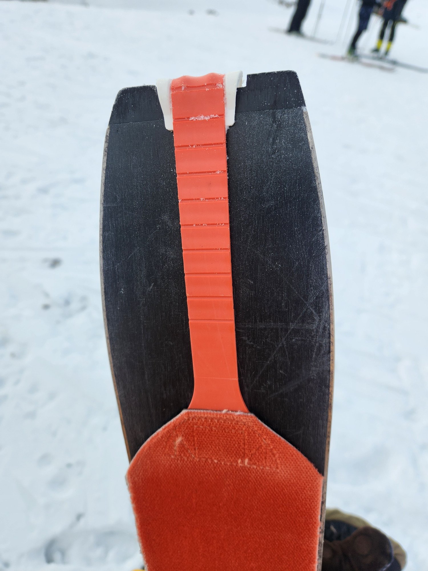 Le crochet à l’arrière est se règle avec un peu de poigne et puis le crochetage est très efficace pour tendre bien la peau. Sur neige dure/poudreuse et froide, le grip est très bon. A chaque avancée, on apprécie l’accroche sans faille de ce modèle. Sur des faux plats ou courtes descentes, ce ne sont pas les meilleures au niveau glisse. On sent un peu de frein mais cela n’est pas très grave car cela sert surtout à monter !