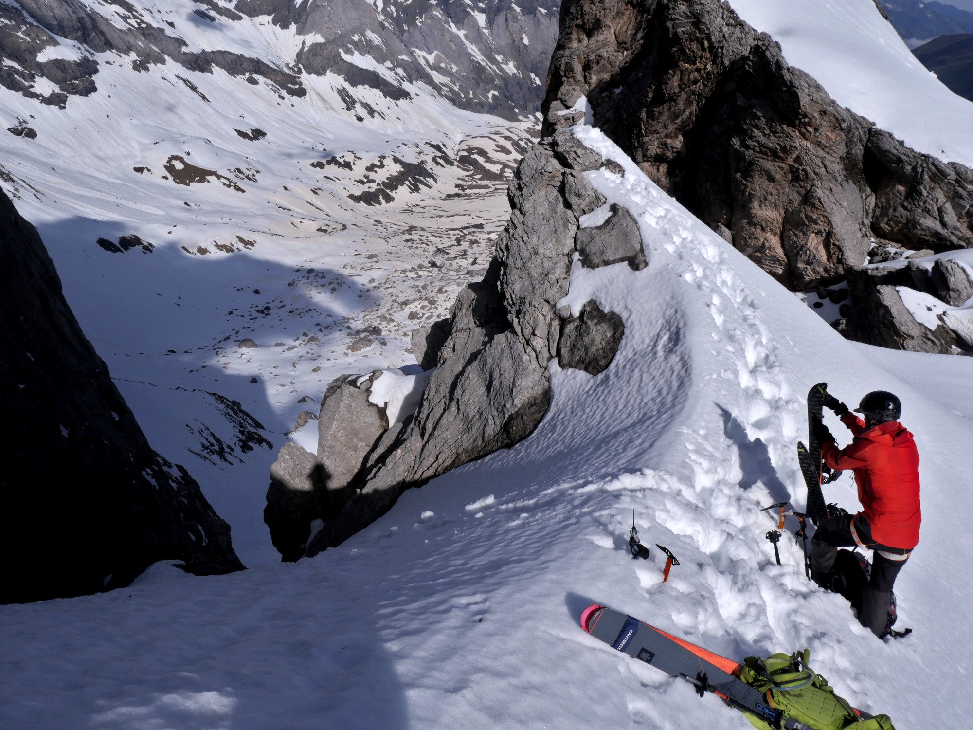 Le crochet se défait facilement et je range les peaux en les pliant en 2 et en les collant entre partie adhésive. S’il faut les remettre peu de temps après, cette technique permet de conserver le maximum d’adhérence et de ne pas perdre de temps pour repasser en mode « montée ».