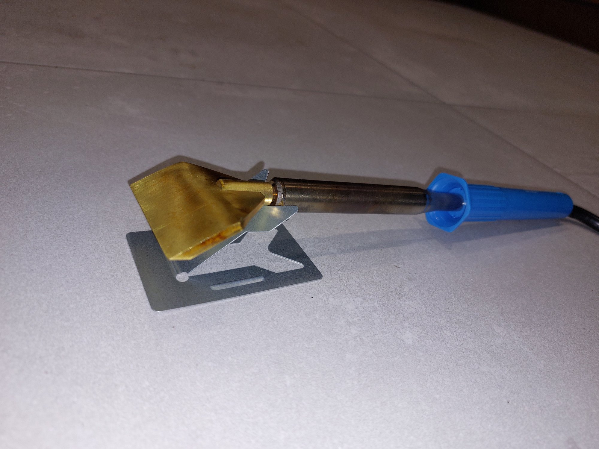 Le racloir est livré avec un petit support en métal qui est bien pratique, et surtout vraiment nécessaire pour ne pas tout cramer quand vous reposer l’outil à chaud (cf. photo).