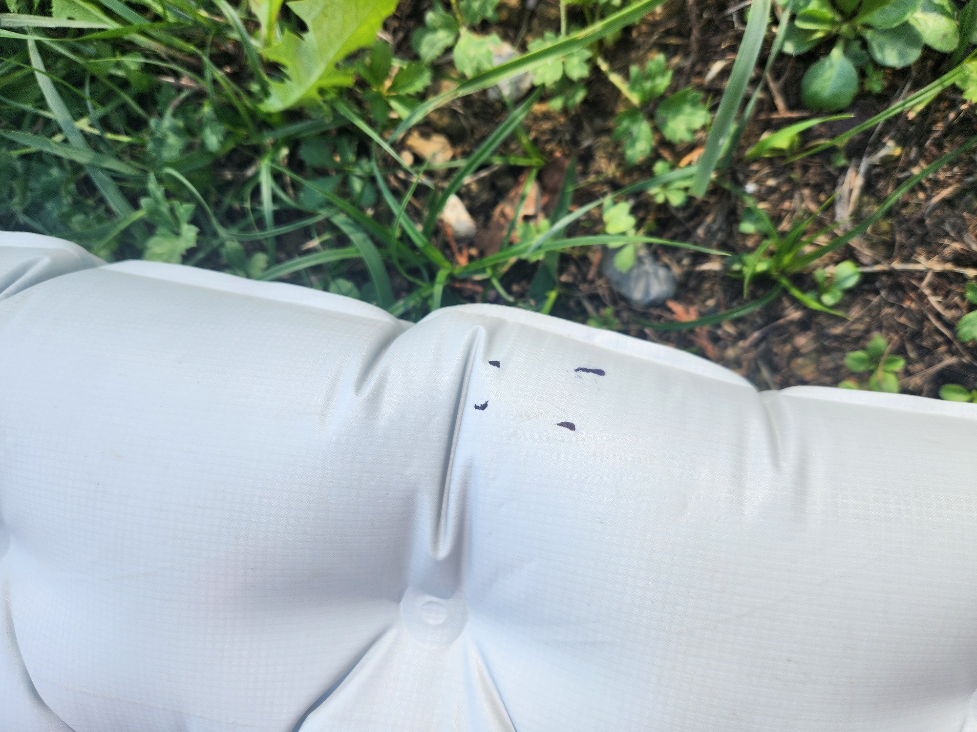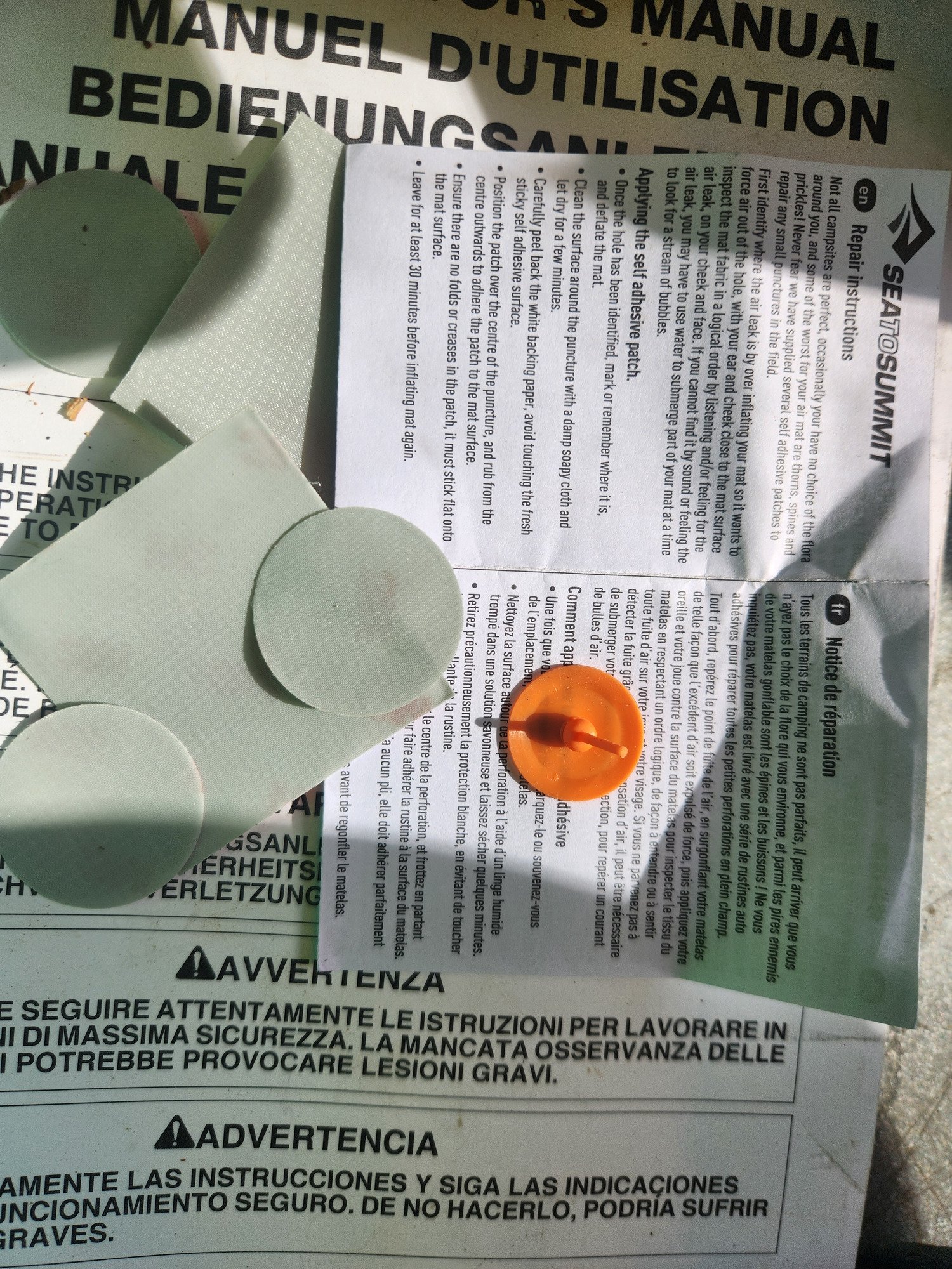 Tout ce qui est léger est coûteux mais aussi, bien souvent, relativement fragile. A plus de 150 euros, c’est un petit budget pour passer de bonne nuit à la belle. La membrane est vraiment fine et lors d’une nuit sur un terrain caillouteux sur une crête frontière à 3000 m d’altitude, j’ai fini la nuit avec un lit dégonflé ! J’avais pourtant mis une couverture de survie en protection mais cela ne pas suffit et je suis reparti avec une micro-fuite pas facile à localiser. Grâce à la piscinette de ma fille, j’ai trouvé la micro-coupure et j’ai réparer avec un des patchs 3M fourni. Depuis, je suis encore plus vigilant et je finis mes nuits à la même hauteur. Il ne faut vraiment pas lésiner sur la protection dès que le sol n’est exempt d’aspérités !