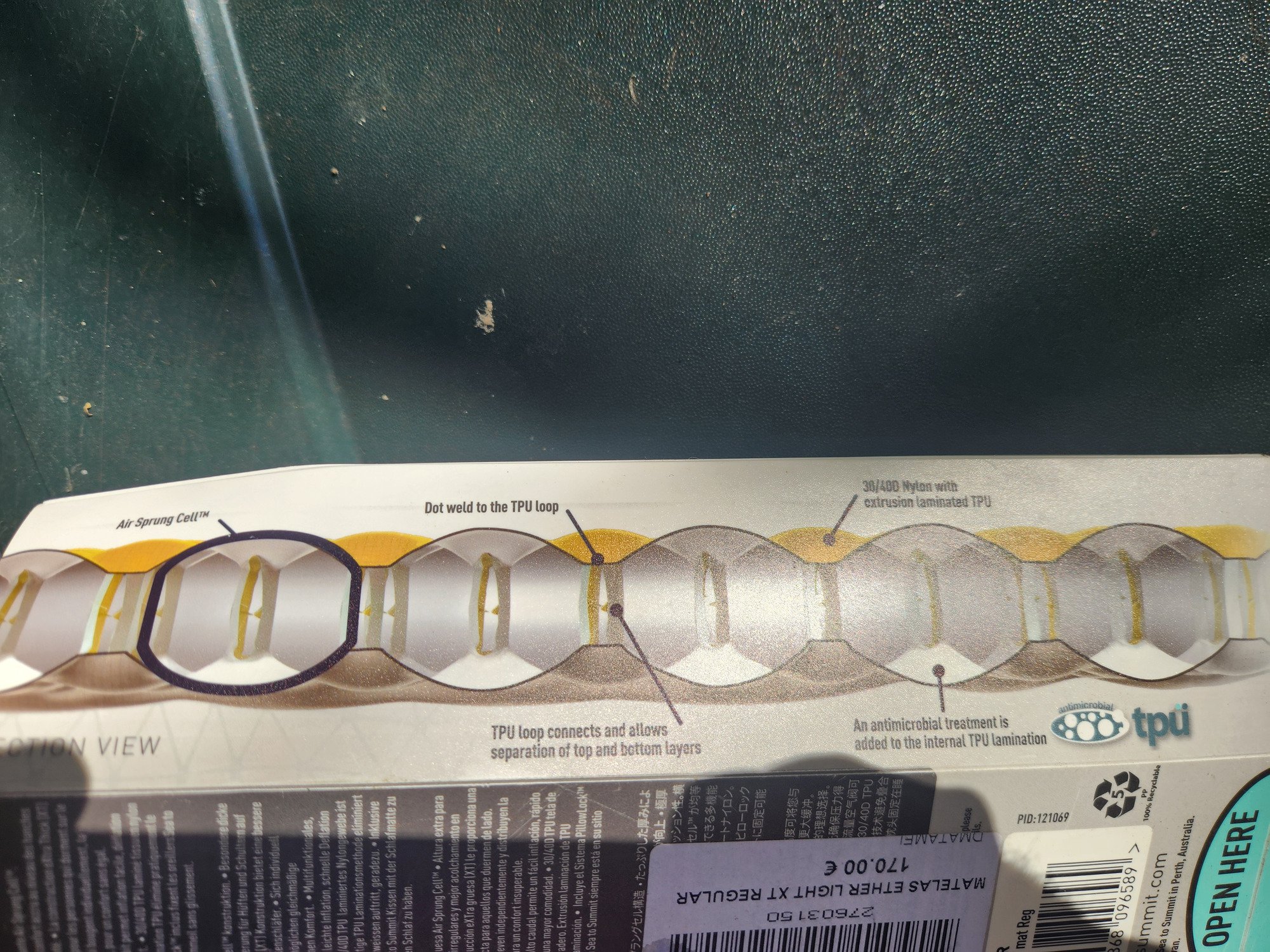 C’est un matelas compact indiqué pour 3 saisons, il ne faut pas des nuits trop fraîches ! Couché, les alvéoles offrent un bon confort ; avec la taille R, la largeur pour les épaules est raisonnable. Même sans protection, le contact direct avec la peau est agréable, c’est un fin velours. Le côté silencieux n’est pas le point fort du matelas. Cela fait tout de même un peu de bruit lorsque l’on a du mal à trouver le sommeil.