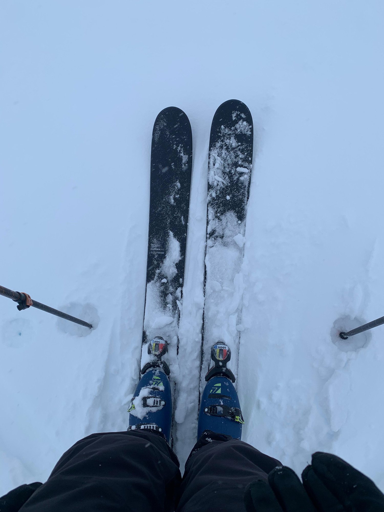 En chaussant les skis et dès les premiers virages c'est instantané, l'accroche est étonnamment bonne, on sent le rayon progressif selon la puissance d'appui que l'on donne, les skis surfent sur la neige tout en mettant en confiance et c'est très agréable. On se sent vite très à l'aise avec et l'envie de jouer avec le terrain est directe. J'ai vraiment eu la sensation d'avoir des gros skis de freestyle aux pieds. Et ca se confirme quand on commence à s'envoyer un peu en l'air, il y a un pop de dingue pour un ski de cette taille, le montage centré le rend très facile a manier. Le ski libère l'esprit créatif, on se sent comme Candide dès les premiers sauts (vite rappelé à l'ordre par les chutes).