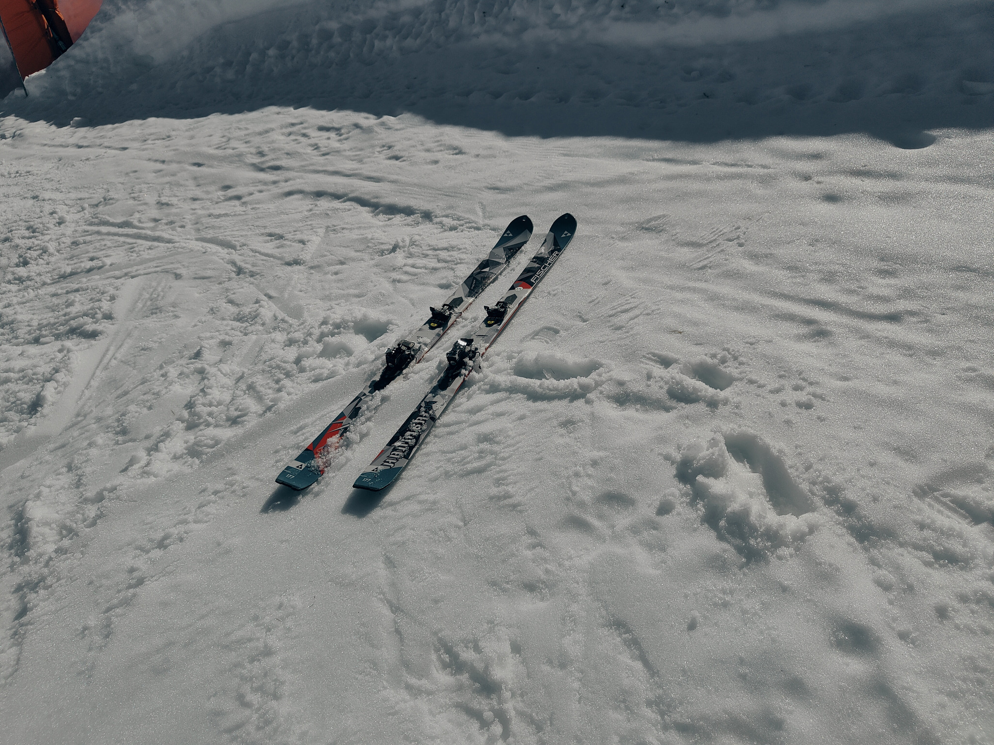 Salomon Addikt pro, qui ont remplacé les Volkl racetiger SL 13 en 170cm et qui font aujourd’hui 50% de mes sorties. Il est devenu mon ski de tous les jours pour tailler avec les copains qui envoient, c’est un ski magique qui vire court et moins exigeant qu’un FIS. Associés à des atomic redster club 110 le combo est parfait.