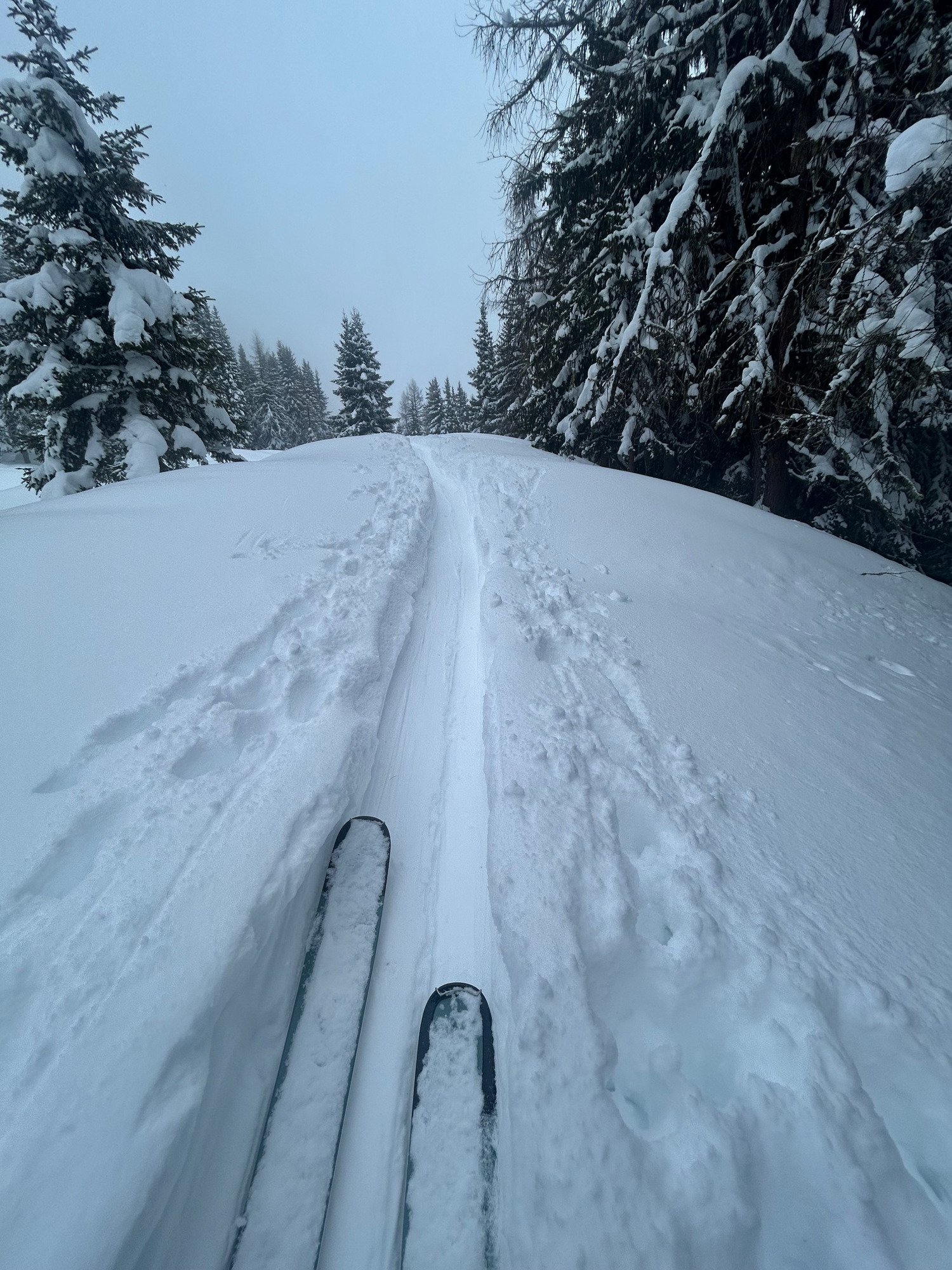 Dans la poudreuse, c'est encore mieux, ça déjauge tout seul, on peut rester sur l'avant sans probleme et sans surprise, attaquer ça passe vraiment bien, c'est fluide et agréable. Idem dans la trafole, ça ne bouge pas.
