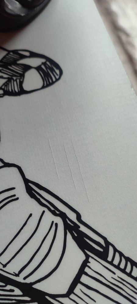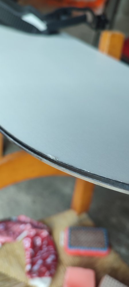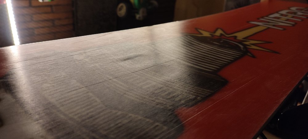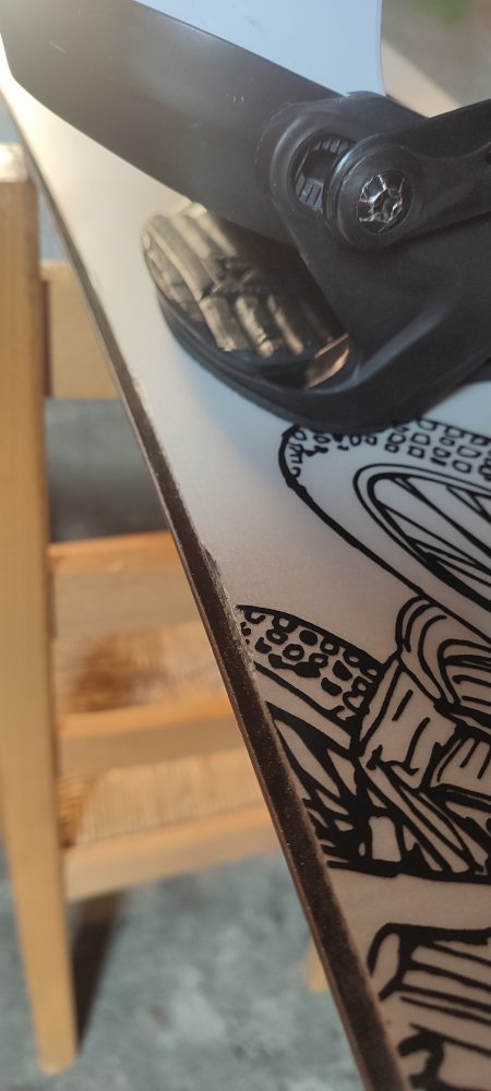 Niveau qualité pour finir : C’est ici que je suis un peu surpris, voire un peu déçu. Dès la première sortie, la board a montré des signes de craquelures sur le top-sheet (les 3 barres sur la photo).