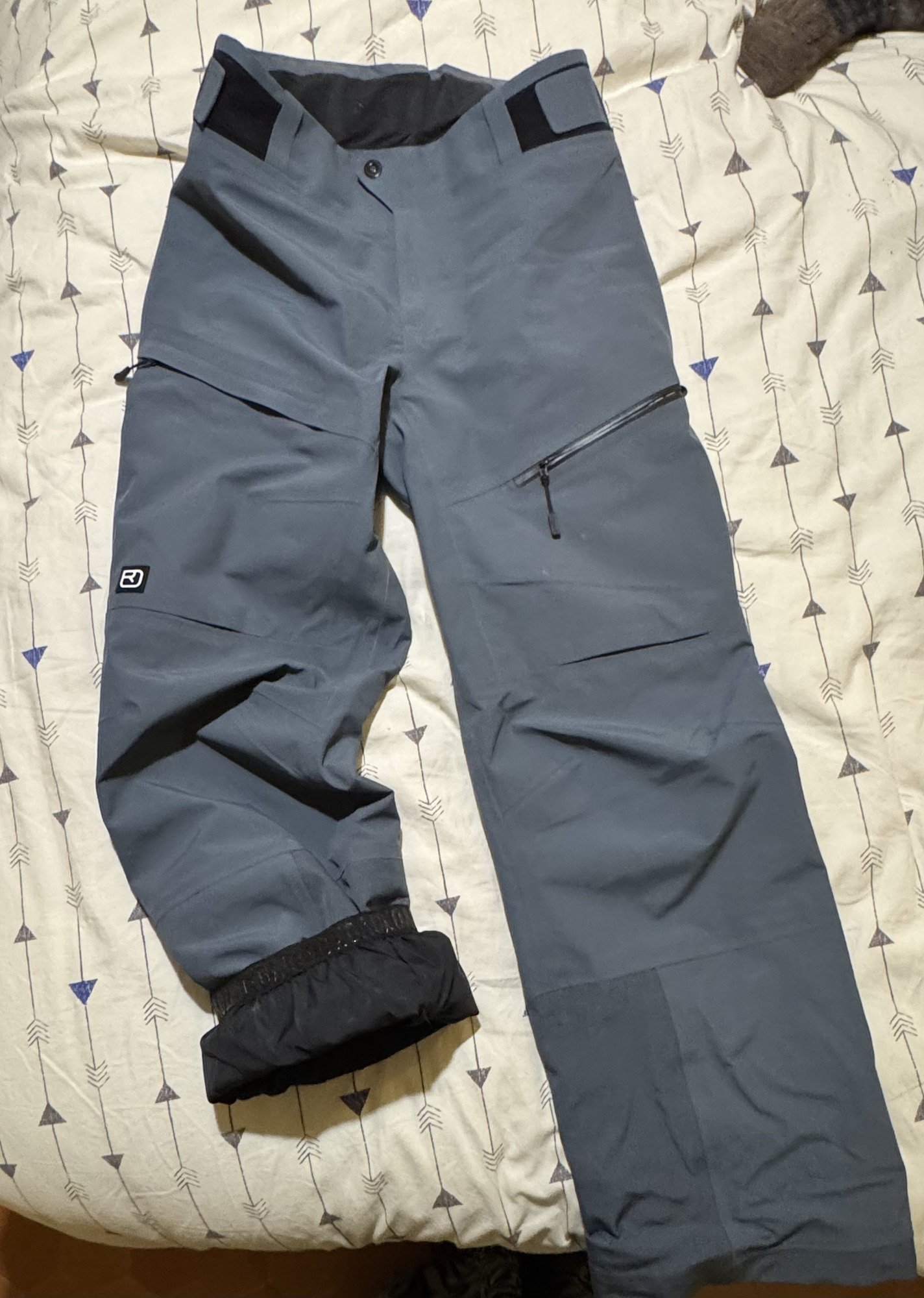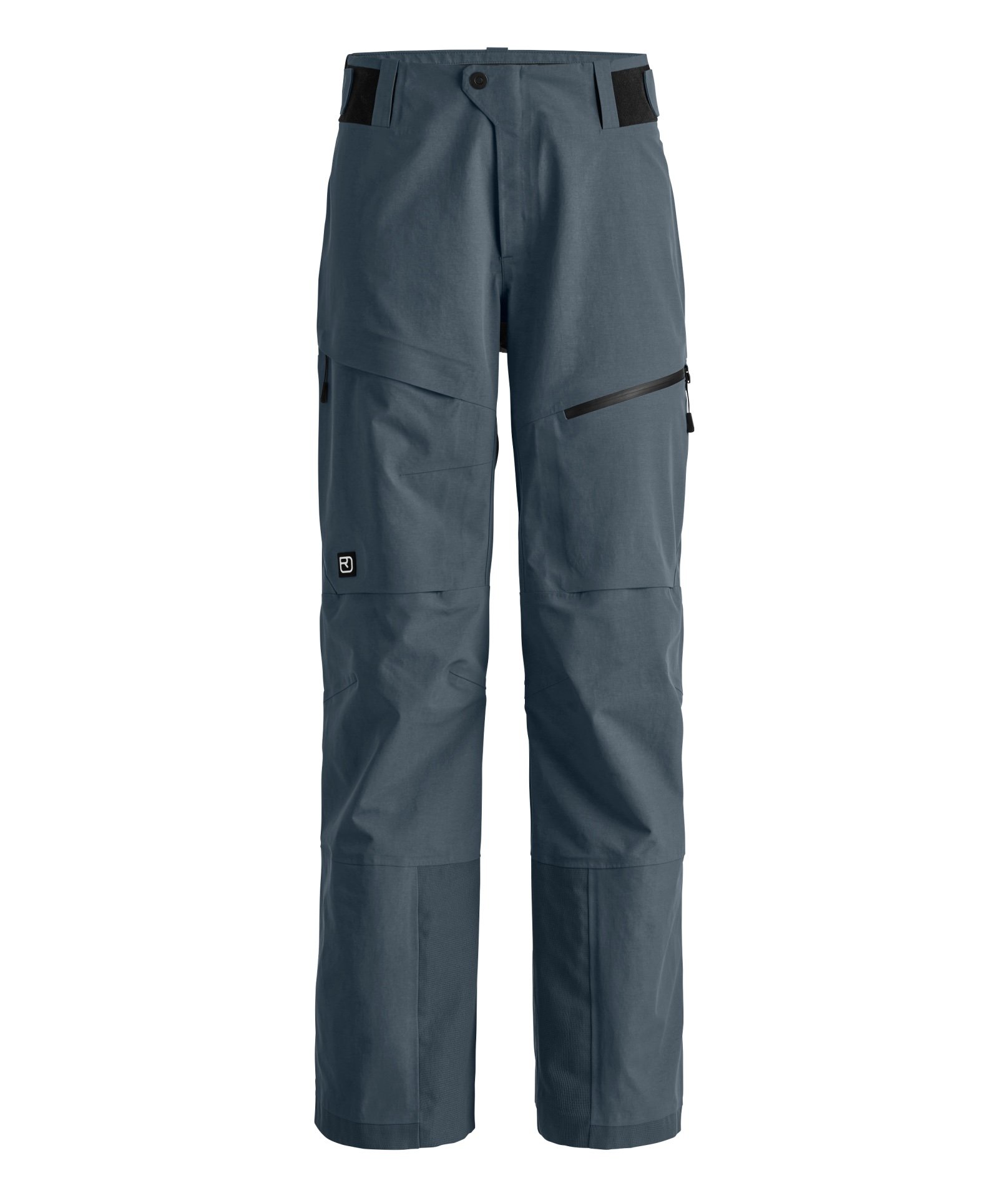 Le pantalon a un excellent équilibre entre technicité et confort. Sa coupe ajustée met en valeur la silhouette tout en conservant l’aisance nécessaire pour skier librement. L’ajustement au niveau des hanches, se fait avec deux scratchs, donc pas besoin de ceinture, et pas de point d’appui avec le sac à dos ou de frottement ! Tous les détails sont là : les guêtres s’adaptent facilement aux chaussures, le bas du pantalon est renforcé pour résister aux coups de carres. Le point fort : la poche droite a une attache pour accrocher le DVA avec une petite poche pour le maintenir prêt du corps sans bouger tout en restant très rapidement accessible. Et puis les zips de ventilation sur les côtés assurent une ventilation efficace pour les sorties rando ! Vraiment le top du top !