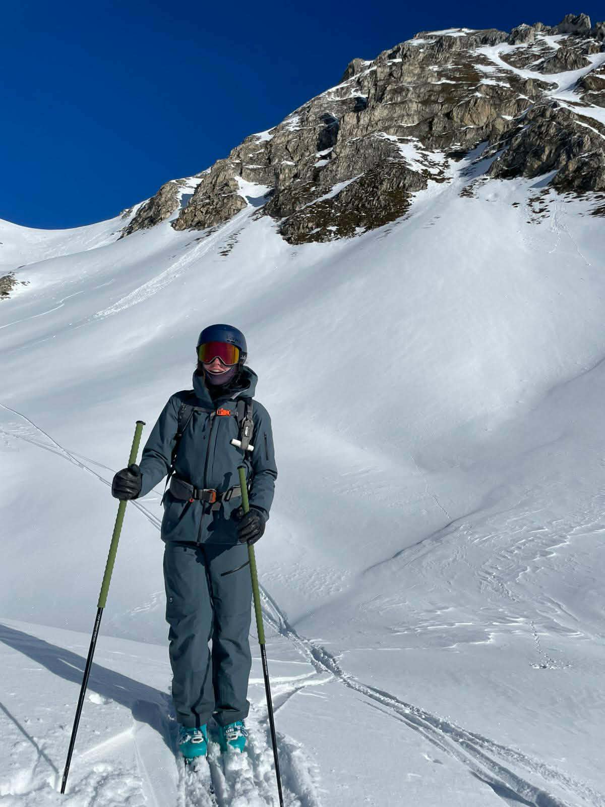 L’ensemble Ravine Plus 3L m’a séduite ! Franchement, c’est la tenue idéale pour toutes sorties sur les skis ! Que ce soit pour du freeride ou de la rando, par les grands froids de décembre ou sous le soleil du printemps, la ravine 3L est au top !