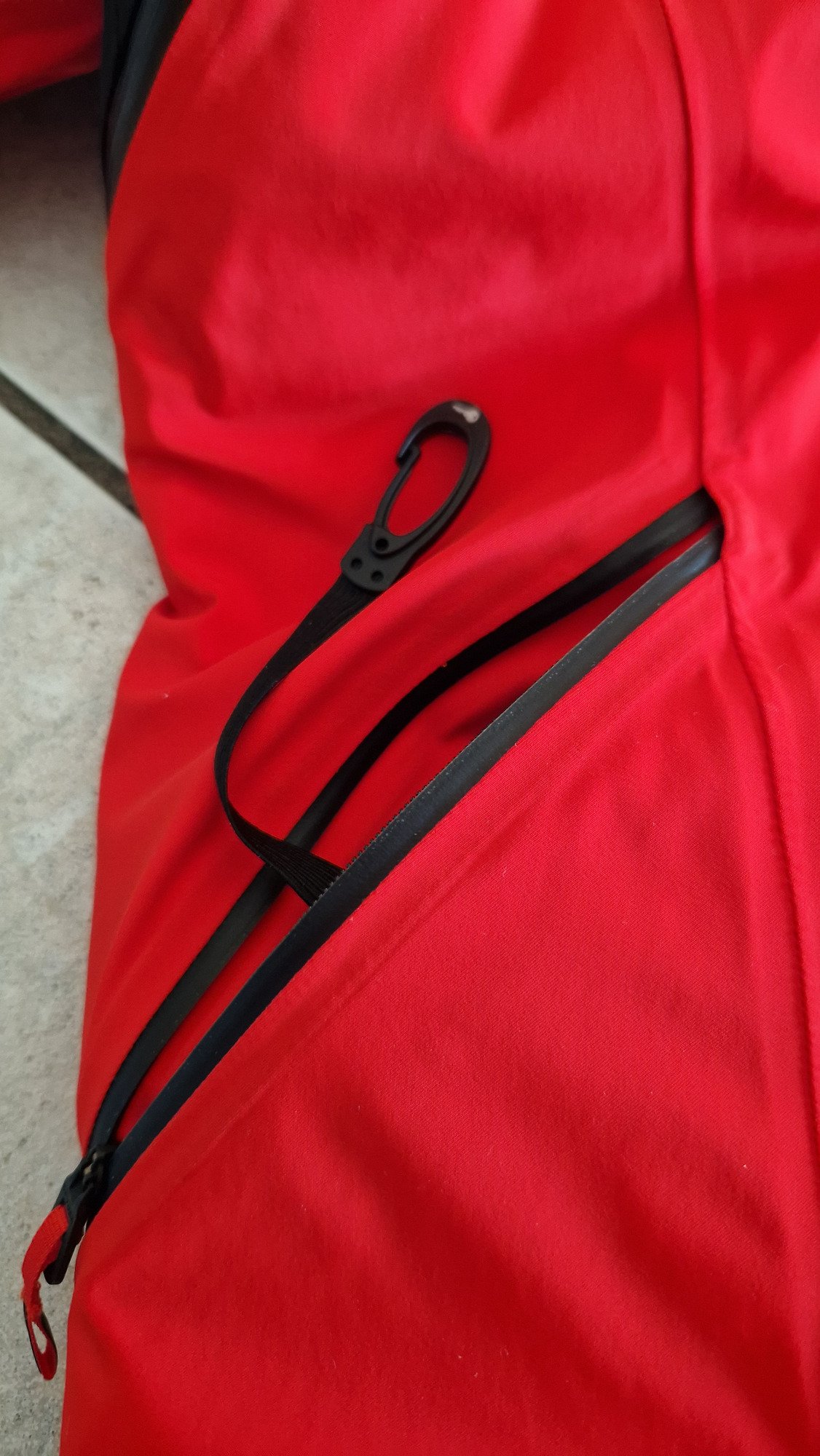 - 2 poches zippées poitrines dont une avec un chiffon microfibre attaché par un mousqueton a un leash élastique pour essuyer son masque ou ses lunettes.