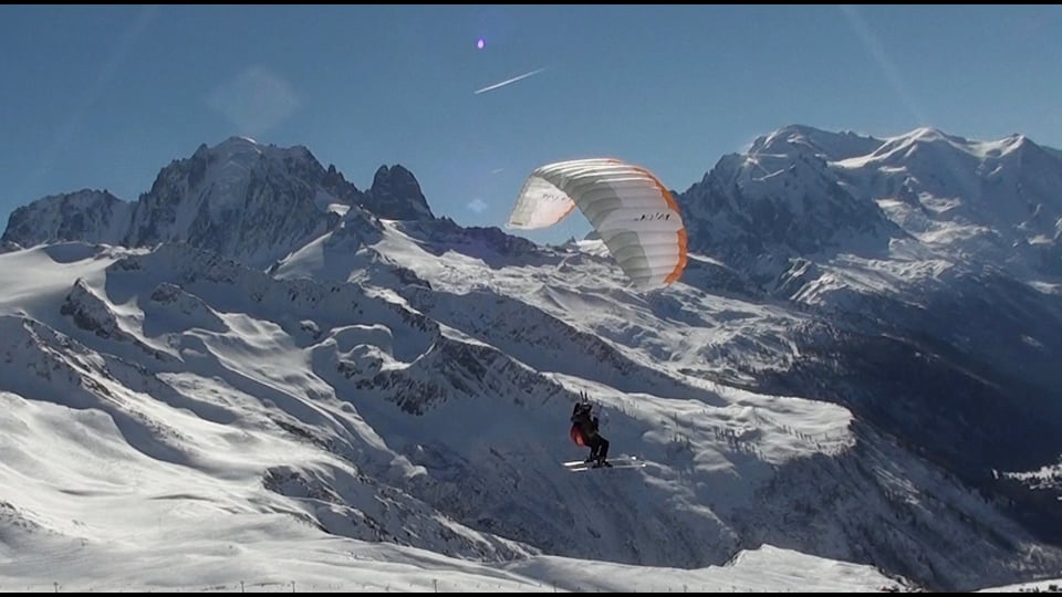 Février 2015, tête de Balme à Chamonix. Superbe session de speed-flying dans le vent fort. A la fin, pas loin de 35km/h en moyenne, un peu limite, je dois redescendre plus bas où le vent est moins fort.