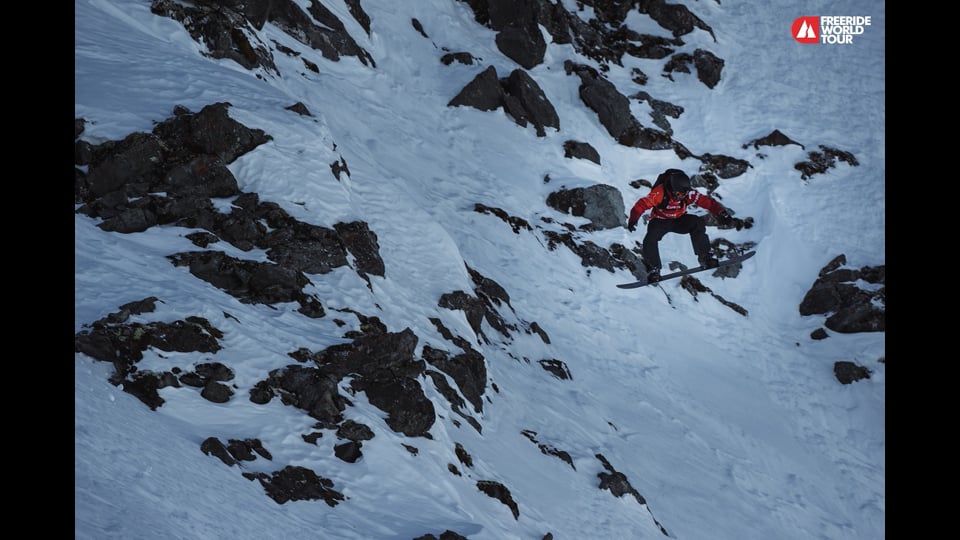 Jonathan Penfield (USA- 1st Place) set the category on fire with a dazzling show of big mountain snowboarding. The first rider out of the gates he linked together a series of huge airs including a backside 360. Entering more exposure he calmly sent his way over another cliff and capitalized on his fluidity score. Three time FWT champion Sammy Luebke (USA- 2nd Place) showed us why he is still one of the best freeriders around throwing down a huge line on the Bec. Starting with a massive air in a steep and technical zone he followed it up with a smooth 360 and yet another big air. Victor De Le Rue (FRA- 3rd Place) claimed his maiden FWT victory in his rookie year. Following in the footsteps of his older brother, Xavier, Victor impressed the judges with a mix of big airs and fluid snowboarding including a massive 360.