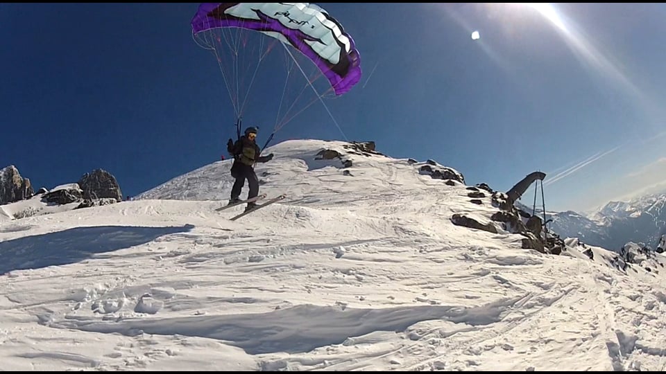 Speed-Riding aux Grands Montets (Chamonix), au printemps.